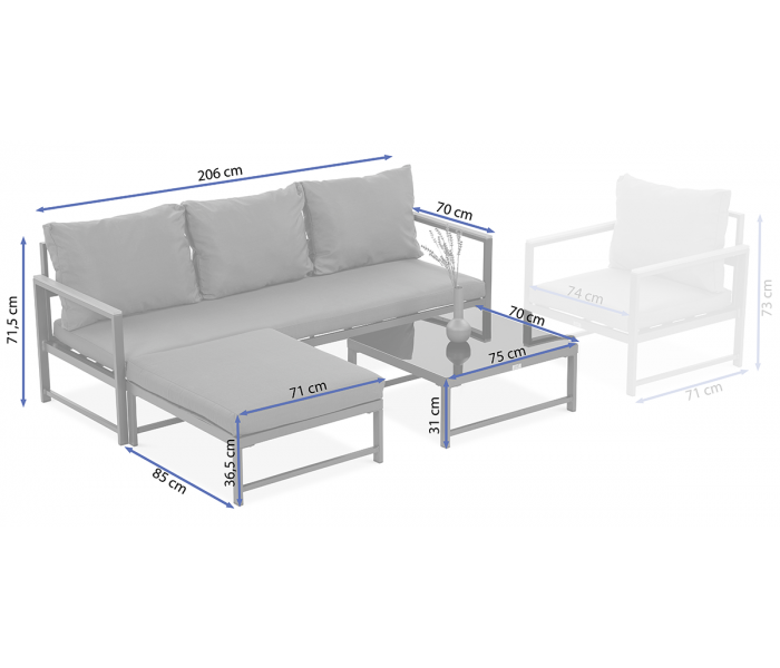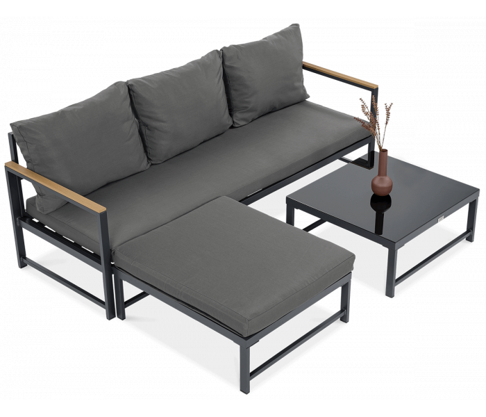 Комплект садових меблів ORLANDO - ідеальний вибір для людей, які цінують як стильний дизайн, так і високий рівень комфорту. Сучасний дизайн робить його ідеальним для будь-якого інтер'єру, як у вітальні, так і на терасі чи балконі. Алюмінієва конструкція з порошковим покриттям забезпечує довговічність і стійкість до зовнішніх факторів, завдяки чому меблі прослужать багато сезонів. М'які подушки для сидіння і спинки з поліестеру забезпечують комфортний і розслаблюючий відпочинок, не турбуючись про дискомфорт або болі в спині. Крім того, кутовий диван ORLANDO можна вільно конфігурувати, поєднавши 3-місний диван з додатковим модулем, щоб ви могли адаптувати меблі під свої потреби та вподобання. Кутовий диван ORLANDO також легко миється. Завдяки використанню матеріалів, які легко миються, меблі легко підтримувати в чистоті, що особливо важливо при використанні на вулиці. Стіл разом з кутовим диваном ORLANDO не тільки функціональний, але й ідеально поєднується з рештою комплекту, створюючи єдине ціле. Кутовий диван Focus Garden ORLANDO Grey - відмінний вибір для тих, хто шукає стильні, зручні та функціональні меблі для відпочинку. Його унікальний дизайн, довговічність, комфорт і легкість очищення роблять його предметом меблів, який виправдає очікування навіть найвимогливіших користувачів.