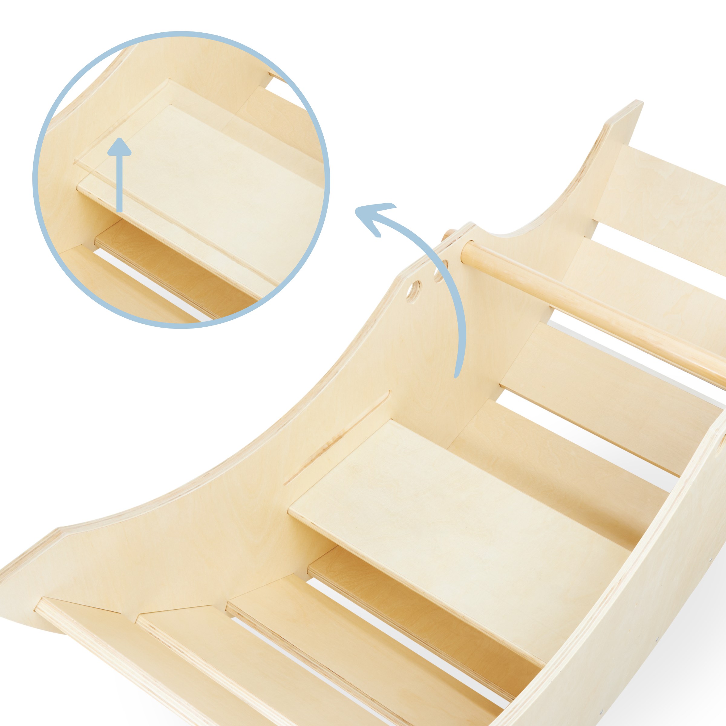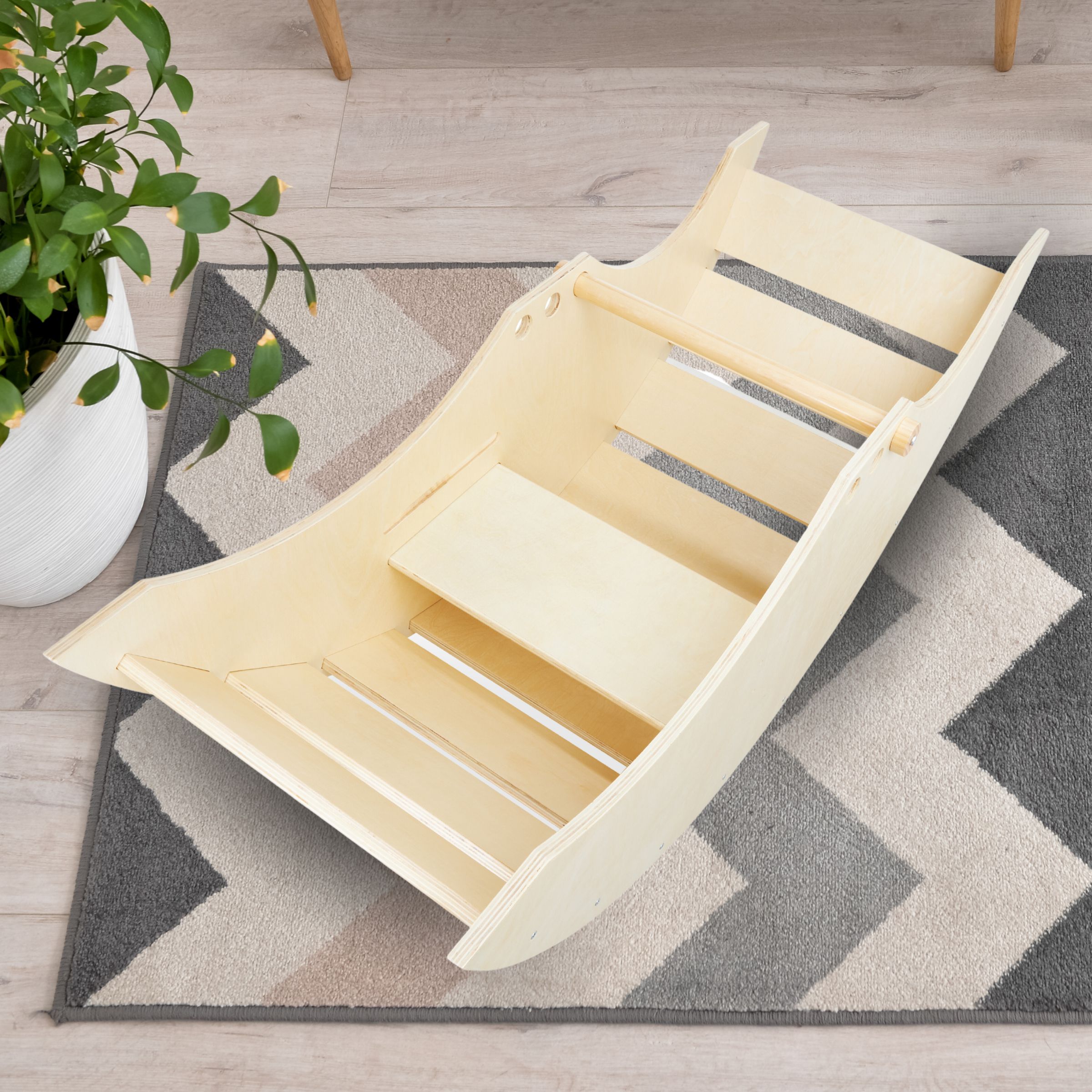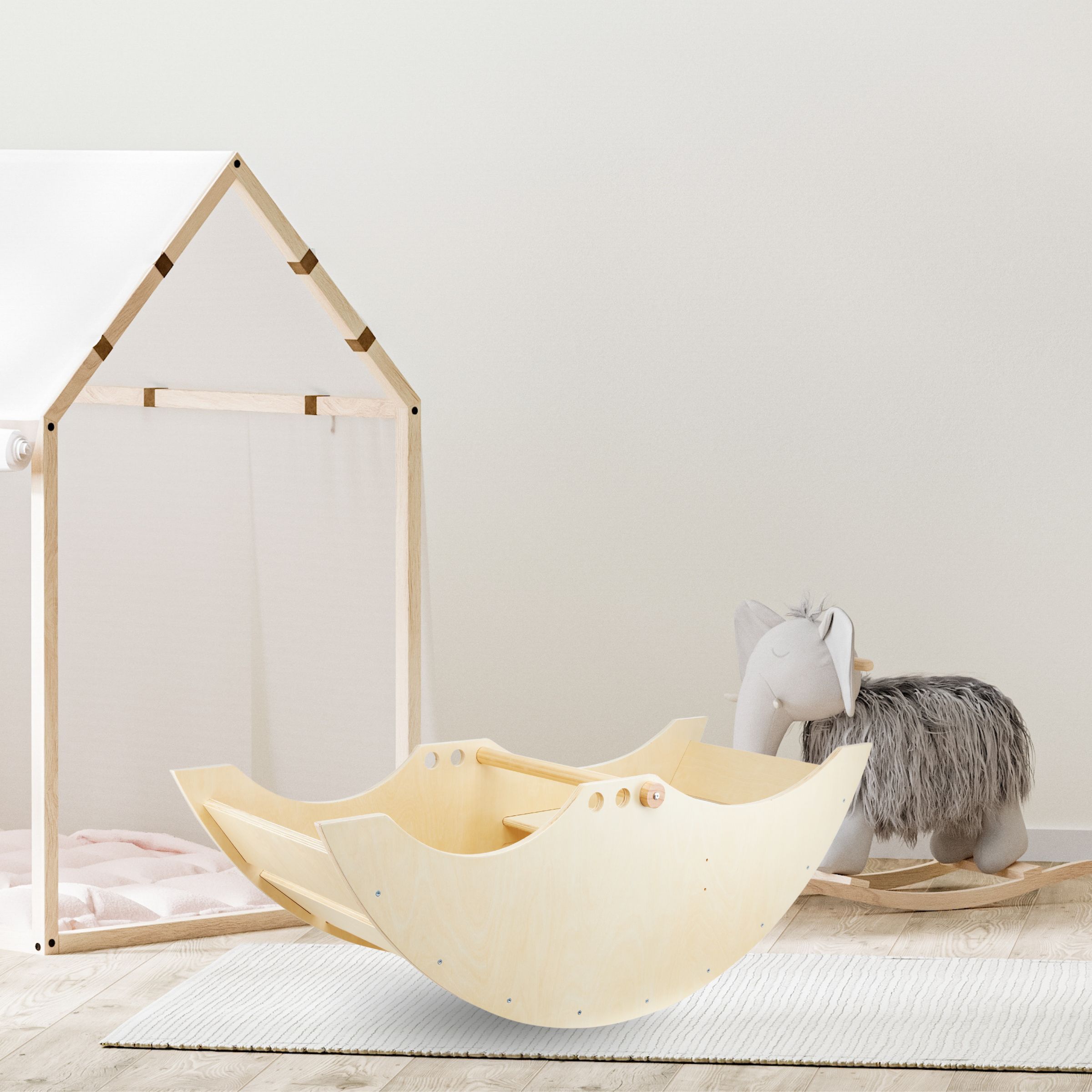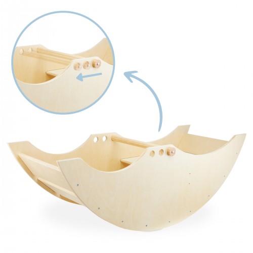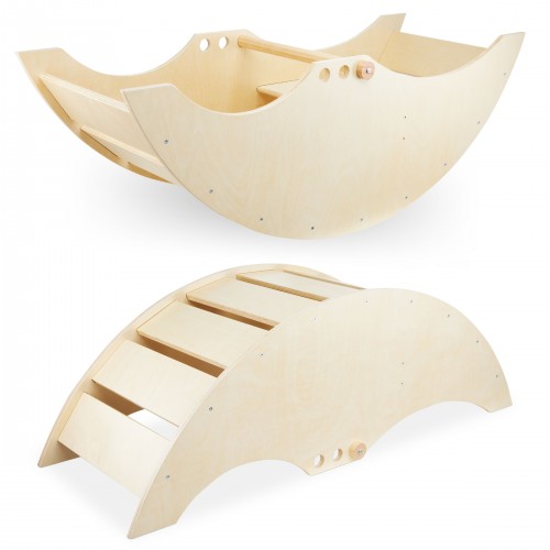 Гойдалка 2в1 Mamabrum з лавочкою - у формі чарівного кораблика подарує вашій дитині масу радості та користі. Завдяки заокругленим краям і гладкій поверхні він ідеально підходить для самих маленьких дітей. Ретельна і якісна робота забезпечує повну безпеку і надзвичайний комфорт. Крім того, для дітей старшого віку качалку можна перевернути і використовувати як драбинку або смугу перешкод, що принесе ще більше задоволення!