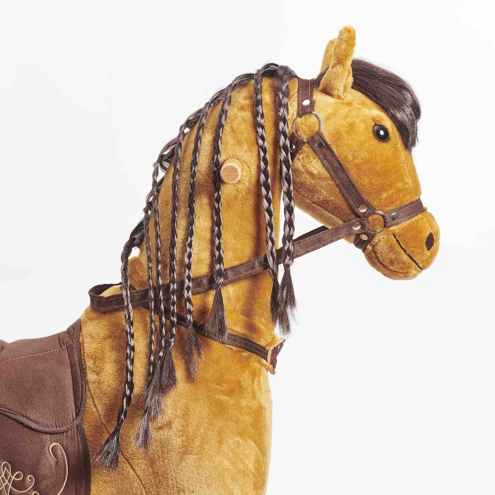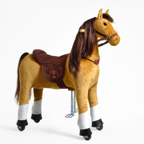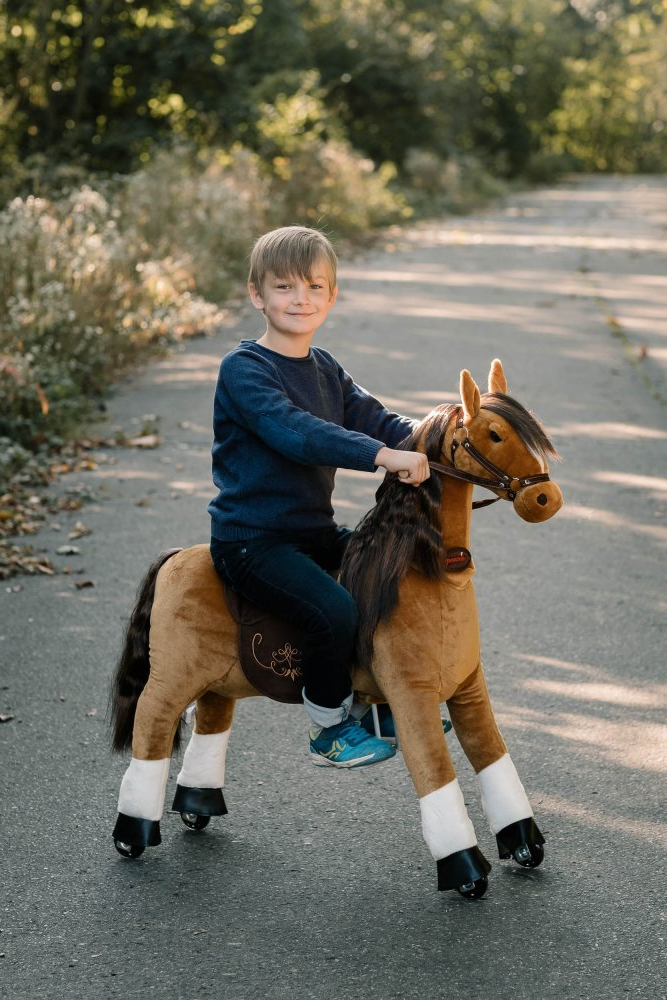 Механічна іграшка коник на колесах Ponnie Fancy M - можна привести в рух, регулярно сідаючи і злізаючи з сідла. Вершник обертанням ручок вказує напрямок руху. Кінь приводиться в рух виключно рухом дитини. У нього немає двигуна, тому для переміщення не потрібні батареї. Катання на конях Понні розвиває координацію та рівновагу дитини . Під час їзди дитина задіює важливі групи м'язів, які зазвичай не навантажені, завдяки чому кінь підтримує здоровий розвиток дитини.Конячка (має колеса з безбарвної гуми (чорний зовнішній вигляд надає внутрішнє чорне пластикове посилення коліс), тому вона не подряпає та не забруднить паркет або плаваючу підлогу. На відкритому повітрі тверда рівна поверхня, наприклад асфальт або тротуару, ідеально підходить для їзди. Мають сучасний механізм, який робить їзду плавною та плавною. Він розроблений таким чином, що сідло не виступає з тіла коня і, отже, не порушує його зовнішній вигляд, як у випадку з багатьма іншими подібними продуктами. Крім того, його корпус значно більший, тому діти можуть користуватися ним довше. Додатковою перевагою є можливість зняти сідло, тому ви можете осідлати Понні як справжнього коня. Розчесана грива і хвіст дозволяють заплітати косу.