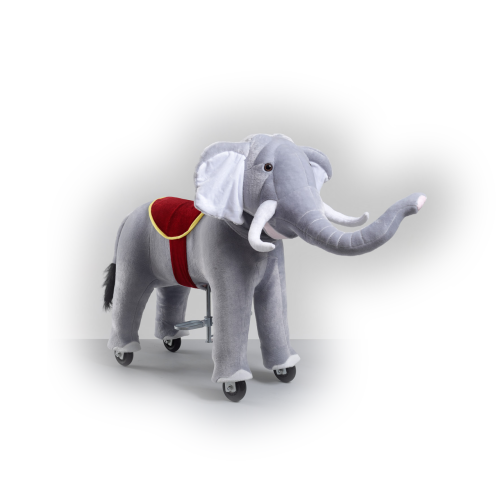 Механічна іграшка слон на колесах Ponnie Bimbo S - можна привести в рух, регулярно сідаючи і злізаючи з сідла. Вершник обертанням ручок вказує напрямок руху. Слон приводиться в рух виключно рухом дитини. У нього немає двигуна, тому для переміщення не потрібні батареї. Катання на слоні Понні розвиває координацію та рівновагу дитини . Під час їзди дитина задіює важливі групи м'язів, які зазвичай не навантажені, завдяки чому слон підтримує здоровий розвиток дитини. Слон (має колеса з безбарвної гуми (чорний зовнішній вигляд надає внутрішнє чорне пластикове посилення коліс), тому вона не подряпає та не забруднить паркет або плаваючу підлогу. На відкритому повітрі тверда рівна поверхня, наприклад асфальт або тротуару, ідеально підходить для їзди. Мають сучасний механізм, який робить їзду плавною та плавною. Він розроблений таким чином, що сідло не виступає з тіла слона і, отже, не порушує його зовнішній вигляд, як у випадку з багатьма іншими подібними продуктами. Крім того, його корпус значно більший, тому діти можуть користуватися ним довше. Додатковою перевагою є можливість зняти сідло, тому ви можете осідлати Понні як справжнього коня. Розчесана грива і хвіст дозволяють заплітати косу.