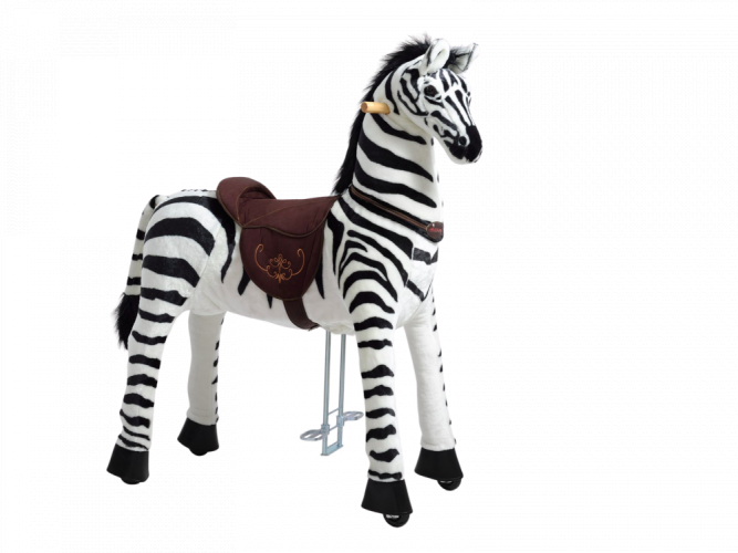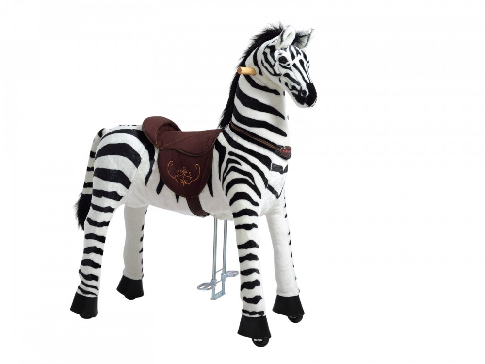 Механічна іграшка зебра на колесах Ponnie XL PROFI - можна привести в рух, регулярно сідаючи і злізаючи з сідла. Вершник обертанням ручок вказує напрямок руху. Кінь приводиться в рух виключно рухом дитини. У нього немає двигуна, тому для переміщення не потрібні батареї. Катання на конях Понні розвиває координацію та рівновагу дитини . Під час їзди дитина задіює важливі групи м'язів, які зазвичай не навантажені, завдяки чому кінь підтримує здоровий розвиток дитини.Конячка (має колеса з безбарвної гуми (чорний зовнішній вигляд надає внутрішнє чорне пластикове посилення коліс), тому вона не подряпає та не забруднить паркет або плаваючу підлогу. На відкритому повітрі тверда рівна поверхня, наприклад асфальт або тротуару, ідеально підходить для їзди. Мають сучасний механізм, який робить їзду плавною та плавною. Він розроблений таким чином, що сідло не виступає з тіла коня і, отже, не порушує його зовнішній вигляд, як у випадку з багатьма іншими подібними продуктами. Крім того, його корпус значно більший, тому діти можуть користуватися ним довше. Додатковою перевагою є можливість зняти сідло, тому ви можете осідлати Понні як справжнього коня. Розчесана грива і хвіст дозволяють заплітати косу.