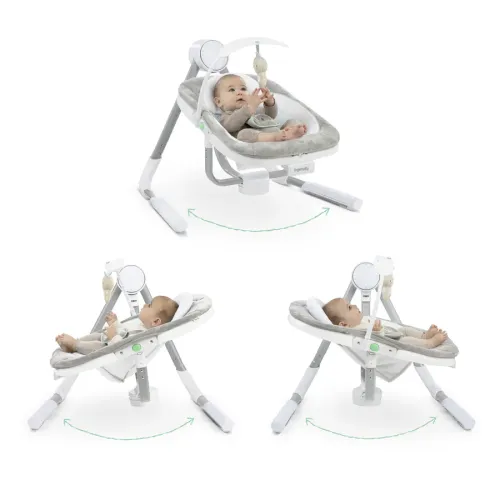 Крісло - гойдалка INGENUITY AnyWay Sway Spruce - створять для вашої дитини затишне місце для сидіння, пригортання та гойдання. Ці повністю завантажені дитячі гойдалки повертаються на 180° і гойдаються в 3 напрямках, допомагаючи дитині залишатися спокійною, поки вона на виду. Вибирайте між 2 режимами із заспокійливою вібрацією: заспокійливі гойдалки або нерухоме сидіння з 2 положеннями нахилу. Поворотна іграшкова планка з плюшевою іграшкою-зайчиком допомагає привернути увагу дитини. Знімний підголівник підтримує новонароджених, а тихий двигун гойдалки допомагає дитині залишатися спокійною. Панель керування GentleTouch дозволяє відтворювати 19 різних мелодій, включаючи звуки природи та білий шум на ваш вибір гучності без натискання кнопок. Музика автоматично вимикається через 20 хвилин. Виберіть таймер на 30, 45 або 60 хвилин із автоматичним відключенням через 2 години. Підключіть унісекс AnyWay Sway за допомогою електричного кабелю USB, що економить батарею (настінний адаптер НЕ входить). Компактна складна конструкція дозволяє легко зберігати і транспортувати гойдалки. Використовуйте від народження до 9 місяців.