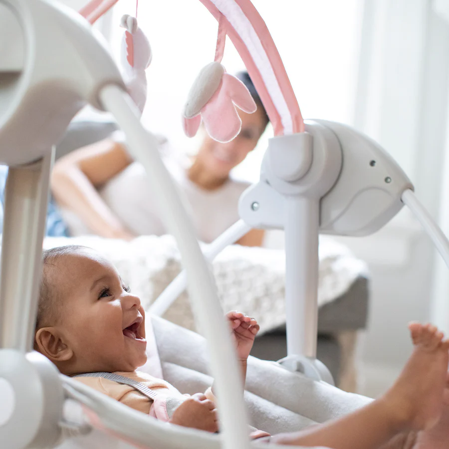 Крісло - гойдалка INGENUITY Comfort 2 Go Flora the Unicorn - подаруйте собі комфорт у дорозі з портативною гойдалкою Comfort 2 Go від Ingenuity. Ці дитячі міні-гойдалки невеликі за розміром, але великі за функціями. Заспокойте свого новонародженого за допомогою автоматичних налаштувань погойдування, 12 заспокійливих мелодій, 2 положень нахилу та 3 зручних налаштувань таймера: 30, 45 і 60 хвилин. Компактна і складна конструкція маленьких дитячих гойдалок робить їх ідеальними для подорожей або просто пересування по дому. М'які підставки для ніг і бічні опори забезпечують оптимальний комфорт для вашої дитини. Ви можете бути спокійні, знаючи, що вона в безпеці завдяки регульованим 5-точковим ременям безпеки. Солодкий рожевий дизайн та іграшки метелик і єдиноріг роблять це ідеальною гойдалкою для дівчинки.