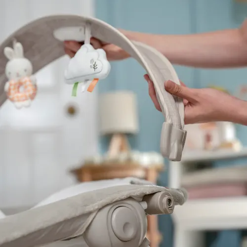 Крісло - гойдалка INGENUITY InLighten Twinkle Tails - подаруйте малюкові місце для відпочинку, щоб пригорнутись і погойдатися за допомогою заспокійливих гойдалки. Ці моторизовані дитячі гойдалки можуть виконувати майже стільки завдань, скільки ви можете. Електронний мобіль із підсвічуванням містить 2 плюшеві іграшки та сліпуче світло, а також дзеркало, щоб діти могли дивитися на своє відображення. Малюки люблять тягнутися до плюшевого кролика та іграшок-хмаринок, які входять у комплект. Завдяки 2 положенням нахилу, делікатним деталям і м’яким тканинам малюк може комфортно гойдатися. Мила дитяча підкладка у формі зайчика забезпечує додаткову підтримку для новонароджених і знімається, коли дитина її переростає. Складаний каркас легкий, його легко транспортувати або переносити з кімнати в кімнату. Використовуйте функцію ConnectMe, щоб підключити смарт-пристрій і відтворювати персоналізовану музику, відео, фотографії тощо! Або заспокойте дитину за допомогою 16 мелодій, 3 звуків природи та білого шуму. USB-шнур, що входить у комплект, забезпечує рух, музику та світло. Настінний адаптер змінного струму не входить у комплект. Безлад не є проблемою з InLighten. Іграшки та раму можна витирати, а накладку на сидіння та подушку можна прати в машині для легкого чищення. Цей обов’язковий атрибут для батьків — чудова ідея подарунка на свято дитини.