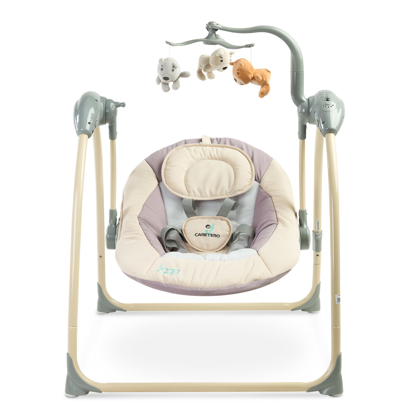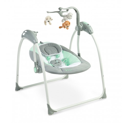 Caretero LOOP - оснащений низкою сучасних функцій, які полегшують щоденний догляд за дитиною. На додаток до стандартних заспокійливих мелодій, він має можливість відтворення mp3-файлів. Гойдалка має п'ять швидкостей гойдання та регульовану тривалість гойдання. Всіма функціями також можна керувати за допомогою пульта дистанційного керування, що входить до комплекту. Гойдалка оснащена режимом розпізнавання голосу. У цьому режимі гойдалка запускається автоматично, коли вона виявляє, наприклад, плач дитини, що лежить в шезлонгу.