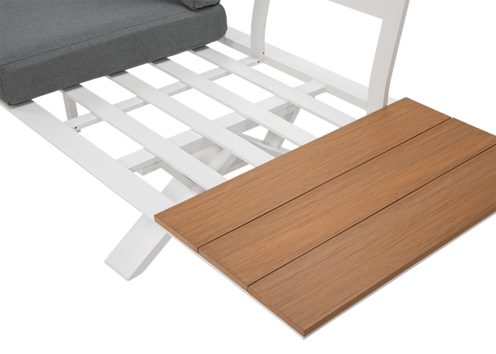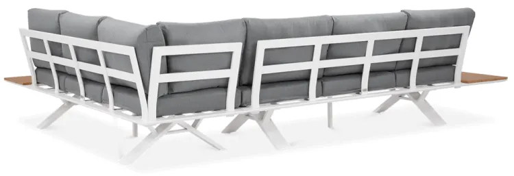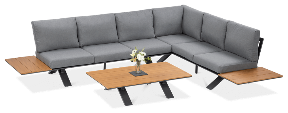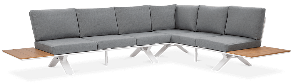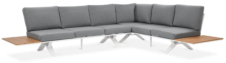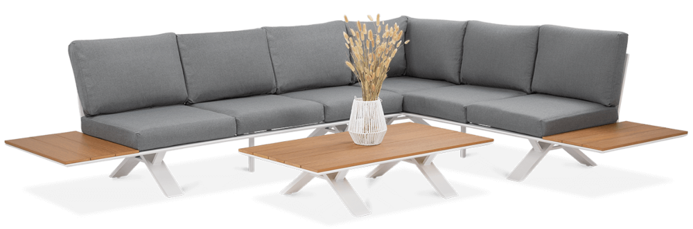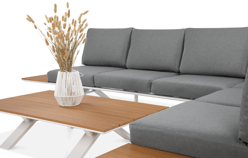 Садові меблі преміум класу, садовий кутовий диван Sorrento - це міцний алюмінієвий каркас, стійкий до більшості типових зовнішніх факторів. Завдяки цьому кутовий диван Sorrento є не тільки функціональною прикрасою саду, а й чудовим обладнанням для ресторану чи готелю. Меблі надзвичайно довго виглядають як нові - і, що не менш важливо, зберігають усі свої практичні переваги. Так як садовий кутовий диван Sorrento складається з двох з'єднаних між собою модулів, то з нього також можна зробити два окремих тримісних дивана. Особливої уваги заслуговують розширені торці та додаткові алюмінієві полиці – так кутовий диван Sorrento отримує зручні підставки, наприклад, для напоїв чи книг. Природно, в комплект також входять зручні подушки для сидіння і спинки. Крім того, в «Фокус Гарден» ми продаємо садовий кутовий диван Sorrento в комплекті з журнальним столиком, що відповідає стилю.
