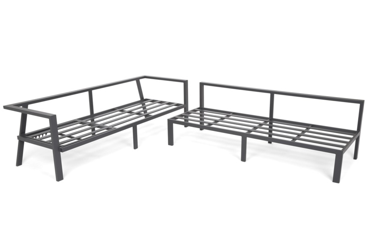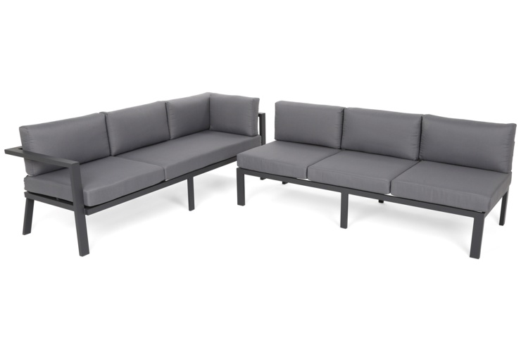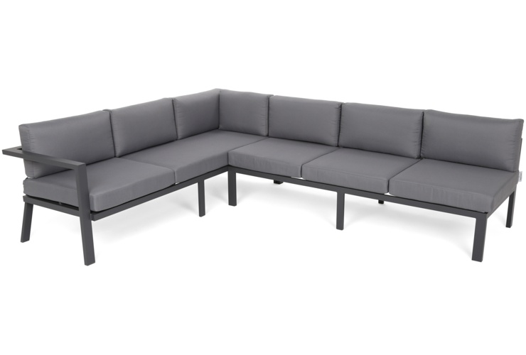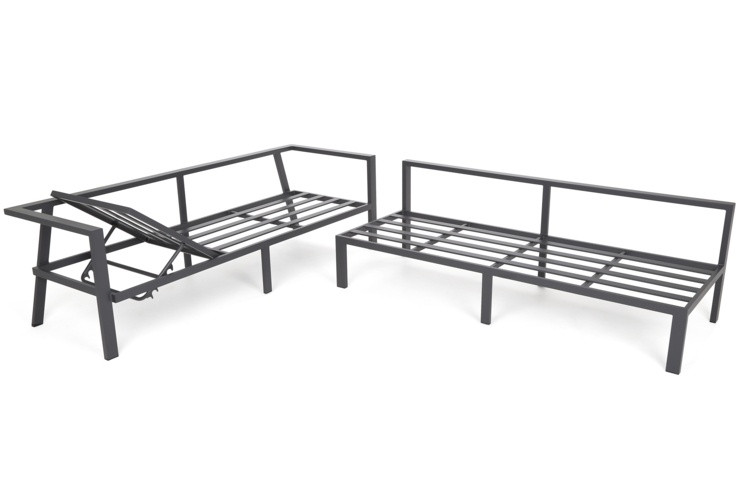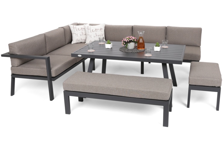 Кутовий набір Galapagos буде добре виглядати на терасі на задньому дворі, в зимовому саду, а також в інтер'єрі. Сучасний дизайн характеризується простою і дещо суворою формою, яка добре поєднується з типом матеріалів, використаних у виробництві меблів. Конструкція як столу, так і куточка виготовлена з алюмінієвих профілів з порошковим покриттям. Стільниця у формі дошки також виготовлена з пофарбованих алюмінієвих профілів. Сидіння і спинки оснащені подушками, оббивка яких застібається на блискавку (тому їх легко чистити). Один з кутових сегментів можна перетворити на шезлонг з підйомним підголовником.