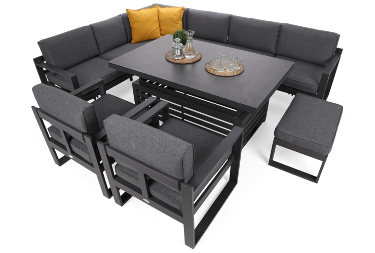 Представляємо вашій увазі кутовий комплект садових меблів Naapol Comfort - ідеальне рішення для любителів красивих, практичних і зручних садових меблів. Виготовлені з високоякісного алюмінію, ці сучасні та стильні садові меблі стануть чудовим доповненням до будь-якого саду, тераси чи внутрішнього дворика.Комплект складається з кутового дивана, столу, двох крісел і лавки, що забезпечує достатньо місця для всієї родини або компанії друзів. Дворівневе регулювання столу дозволяє адаптувати його під обідню або вітальню, що робить меблі Naapol Comfort Grey / Grey Melange універсальним вибором.Кутовий диван складається з двох диванів з піднятими спинками, що утворюють два зручних лежака - ідеальне місце для відпочинку в теплі літні дні. Сірий колір додає меблям елегантності та позачасового характеру, завдяки чому вони вписуються в будь-який стиль саду.Меблі Naapol Comfort відрізняє не тільки зовнішній вигляд, але і якість виконання. Твердий алюміній – матеріал, стійкий до погодних умов, що робить меблі довговічними та простими в обслуговуванні. Крім того, легка конструкція та ергономічні форми дозволяють легко переставляти та зберігати меблі.Якщо ви шукаєте оригінальні та функціональні садові меблі, які здивують вас своїм зовнішнім виглядом і спонукатимуть до відпочинку на свіжому повітрі, кутові алюмінієві садові меблі Naapol Comfort — ідеальний вибір для вас.