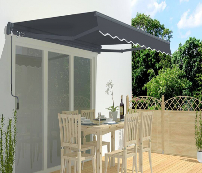 Тканина маркізи була ретельно відібрана, щоб забезпечити захист від шкідливого впливу УФ-променів. Виготовлена з поліестеру 280 г / ㎡, з PU покриттям, тканина водонепроникна і водонепроникна. Завдяки цьому ви можете насолоджуватися терасою навіть під час короткочасних опадів.