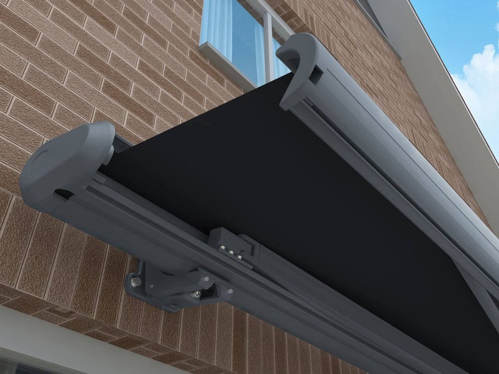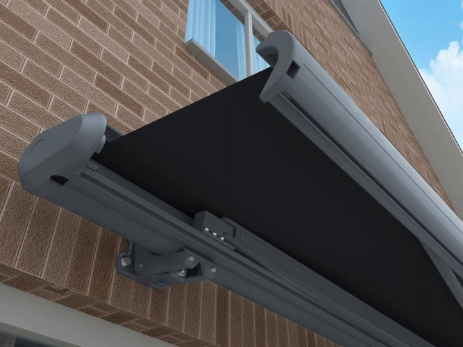 - Двигун подвійного призначення: Вдосконалений двигун маркізи забезпечує безперебійну роботу механізму. Ним можна керувати як вручну, так і за допомогою пульта дистанційного керування.
