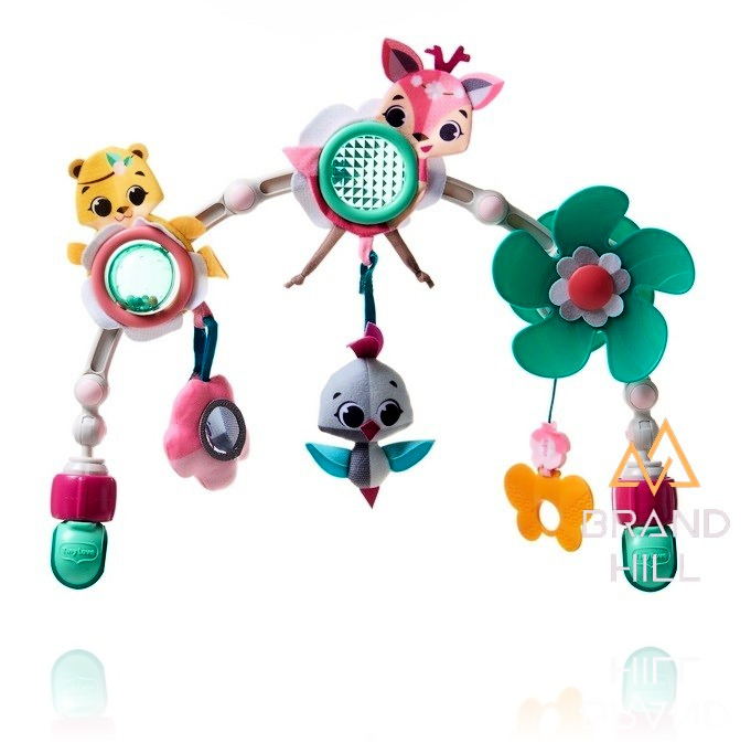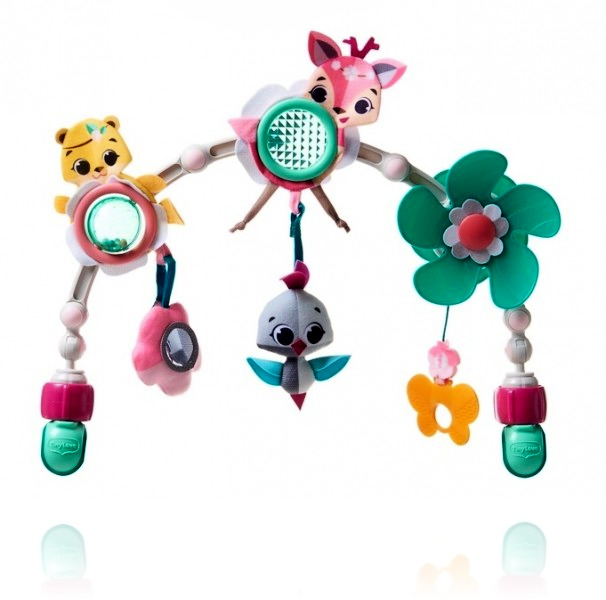 Дуга-трансформер Tiny Love Світ Маленької Принцеси - це унікальний продукт, який додається в дитяче крісло, лежак або коляску. Іграшка дуже проста в збиранні, а регулювання її кута дозволить адаптувати її до потреб кожної дитини. Іграшки, підвішені на носі, дозволять кожній дитині розвинути великі рухові навички, чіткі рухи та почуття. Милий зайчик, веселе лисеня і маленька бджілка розважать малюка. У фігурку зайчика вбудована прозоре брязкальце, що обертається, з кольоровими кульками. Є і прорізувач у вигляді великої моркви - прекрасний засіб прибрати у малюка неприємні відчуття під час зростання зубів. Дзеркальце, що звучать іграшки, квітка, що обертається - всі вони виготовлені з матеріалів з різною фактурою для розвитку тактильних почуттів дитини. Всі деталі великі, яскраві та кольорові для привернення уваги дитини. Іграшки можна знімати із кріплень на дузі. Конструкція дуги виконана на шарнірах і дозволяє змінювати її форму та відстань від іграшок до дитини. Передбачено універсальне кріплення у вигляді захвату для встановлення на коляски різних конструкцій та габаритів. Виконана з ударостійкого пластику, текстилю та гіпоалергенного силікону.