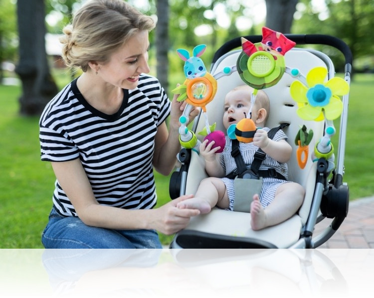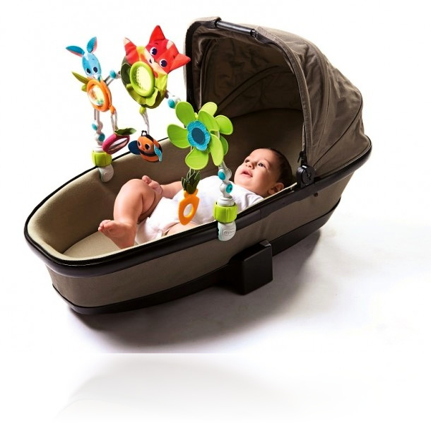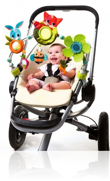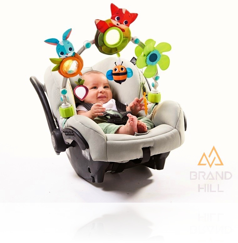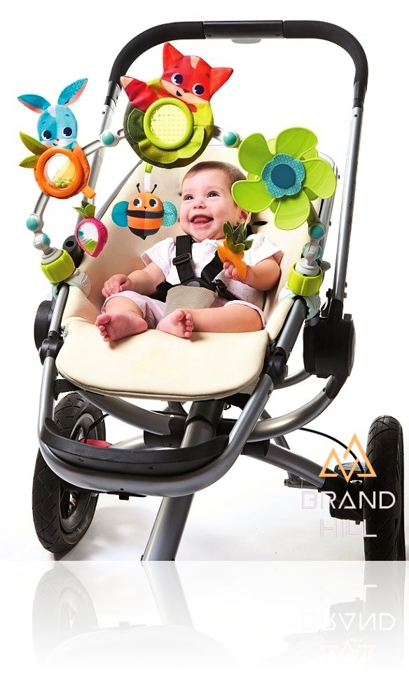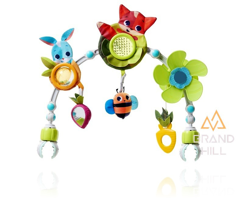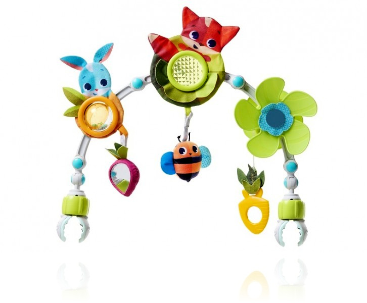 Дуга-трансформер Tiny Love Сонячна галявина - це унікальний продукт, який додається в дитяче крісло, лежак або коляску. Іграшка дуже проста в збиранні, а регулювання її кута дозволить адаптувати її до потреб кожної дитини. Іграшки, підвішені на носі, дозволять кожній дитині розвинути великі рухові навички, чіткі рухи та почуття. Милий зайчик, веселе лисеня і маленька бджілка розважать малюка. У фігурку зайчика вбудована прозоре брязкальце, що обертається, з кольоровими кульками. Є і прорізувач у вигляді великої моркви - прекрасний засіб прибрати у малюка неприємні відчуття під час зростання зубів. Дзеркальце, що звучать іграшки, квітка, що обертається - всі вони виготовлені з матеріалів з різною фактурою для розвитку тактильних почуттів дитини. Всі деталі великі, яскраві та кольорові для привернення уваги дитини. Іграшки можна знімати із кріплень на дузі. Конструкція дуги виконана на шарнірах і дозволяє змінювати її форму та відстань від іграшок до дитини. Передбачено універсальне кріплення у вигляді захвату для встановлення на коляски різних конструкцій та габаритів. Виконана з ударостійкого пластику, текстилю та гіпоалергенного силікону.