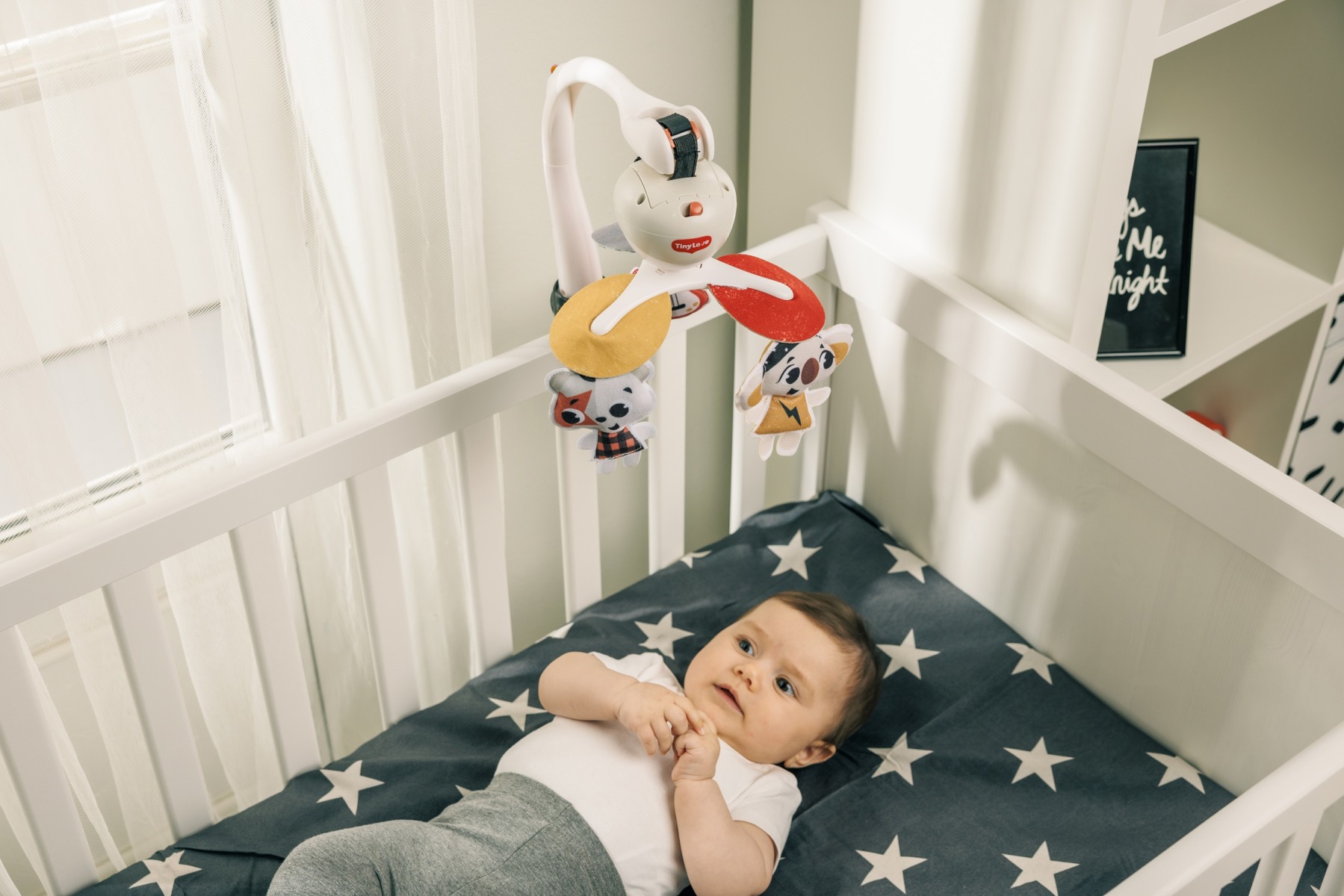- Спеціальне кріплення дозволяє прикріпити мобіль до більшості туристичних ліжечок, манежів, автокрісел, люльок і колясок.