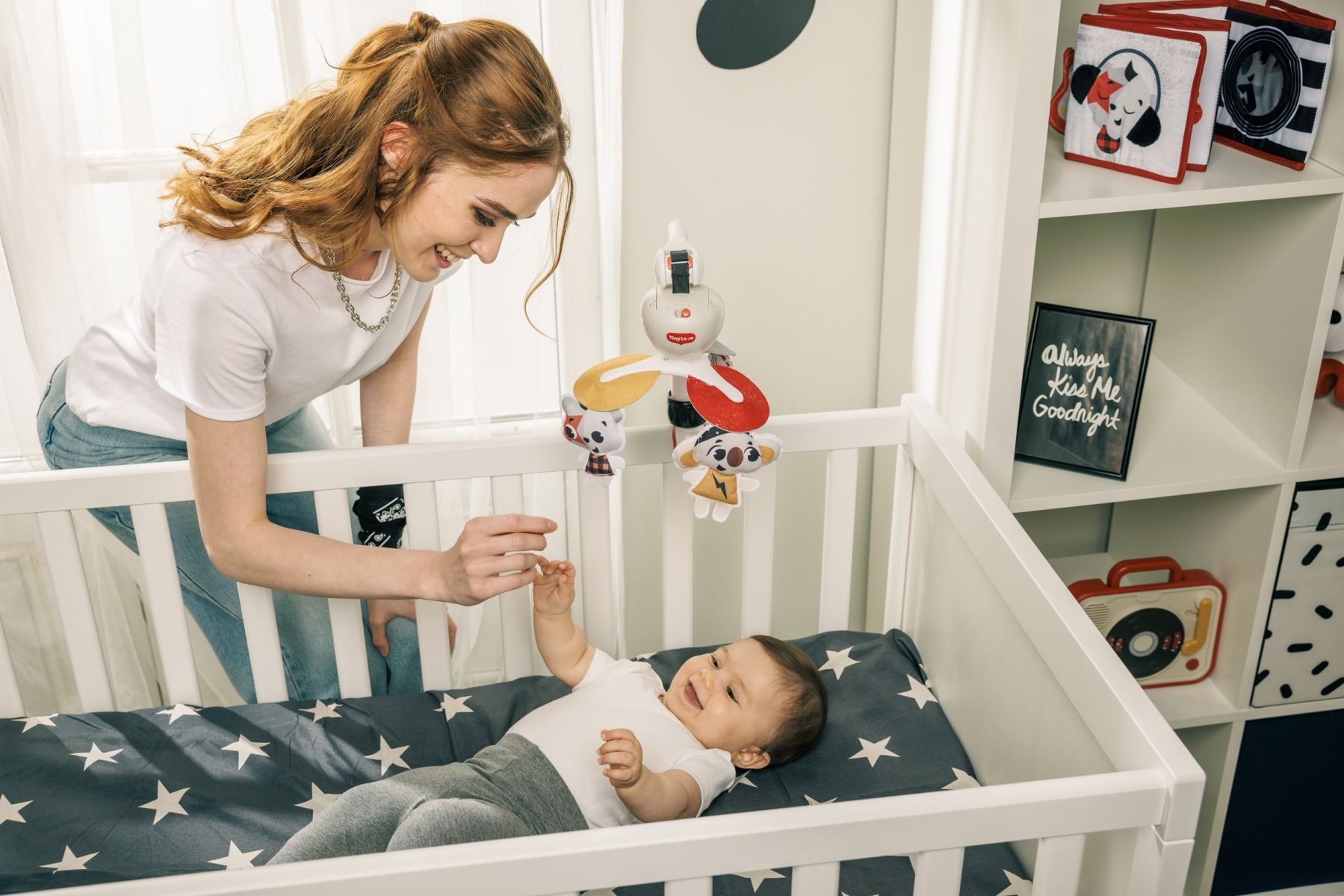 - Цікавий дизайн, чудові візерунки та кольори забезпечують дітям необхідну візуальну стимуляцію. Милі фігурки, що висять і обертаються над ними, забезпечують візуальну та емоційну стимуляцію та заохочують видавати звуки та спілкуватися.