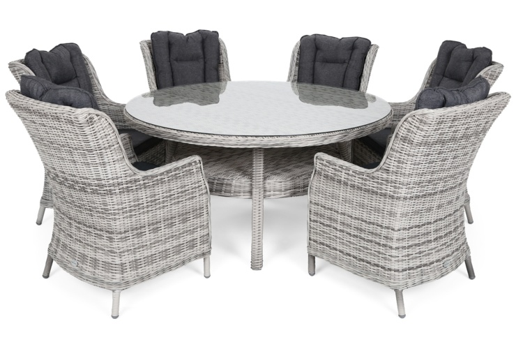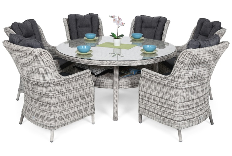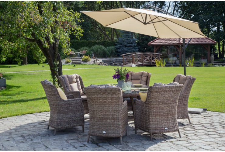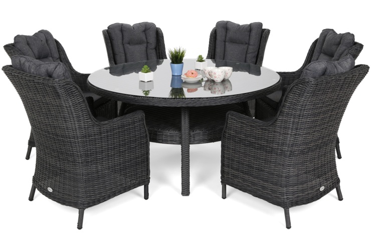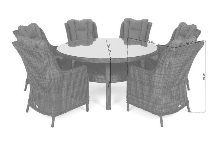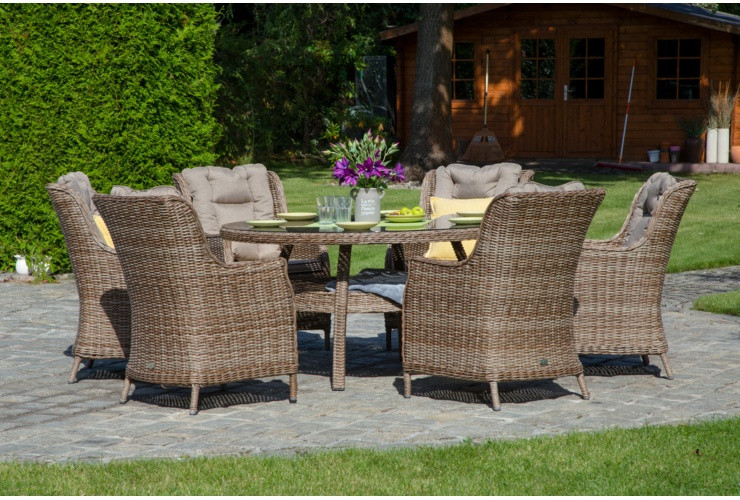 Bristol Round Elegant 150 см - відмінний варіант для тих, хто шукає набір садових меблів трохи компактнішого розміру. У комплект входить шість зручних крісел, м'які подушки і вишуканий столик. Набір виготовлений з комбінації техноратангу та алюмінію з порошковим покриттям, що гарантує, що він буде міцним і прослужить своєму власникові довгі роки. Скляна стільниця столу надає набору сучасний і універсальний вигляд.Правильно розміщена полиця дозволяє легко використовувати навіть високим людям і забезпечує додатковий простір для зберігання дрібних аксесуарів або повсякденних речей.Завдяки використаним матеріалам набір Bristol не тільки стійкий до пошкоджень і погодних умов, але також відносно легкий і зручний для транспортування. У нашому магазині ви знайдете його в шести колірних варіантах!