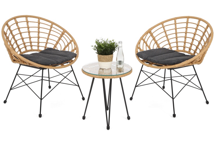 Шукаєте компактний і стильний набір садових меблів? Комплект Занзібар з техноротанга - ідеальний вибір для Вас!Два акуратних крісла і невеликий столик ідеально підійдуть для невеликої тераси, балкона або затишного куточка саду.Меблі Zanzibar, виготовлені зі стійкого до погодних умов техноратангу та сталі з порошковим покриттям, забезпечать вам комфорт і відпочинок надовго.Інвестуйте в набір Zanzibar і створіть куточок відпочинку своєї мрії!