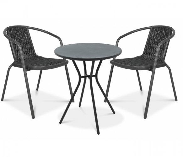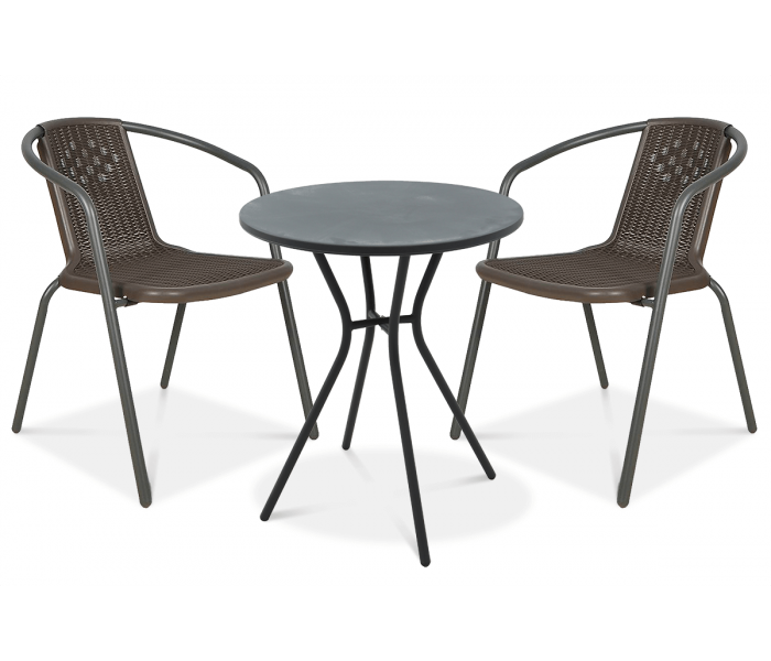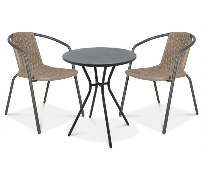 Набір садових меблів Simple стіл + 2 крісла - розроблений для забезпечення максимального комфорту під час відпочинку на балконі. Цей стильний і елегантний набір складається з двох зручних стільців і круглого столу, ідеально підходить для відпочинку в теплі літні дні. Конструкція крісел виготовлена з коричневої сталі з порошковим покриттям, що надає меблям сучасний та елегантний вигляд, який ідеально вписується в будь-яке середовище. Сидіння та спинки крісел виготовлені з цільного матеріалу з натуральною структурою ротанга, що робить меблі міцними та практичними у використанні. Крім того, крісла можна скласти один в одного, що полегшує зберігання та економить місце. Стільниця виготовлена з міцного пластику графітового кольору, стійкого до погодних умов і УФ-випромінювання. Якщо ви шукаєте стильний і елегантний набір балконних меблів, який прикрасить ваш балкон, обирайте балконний комплект Focus Garden Simple2+1.