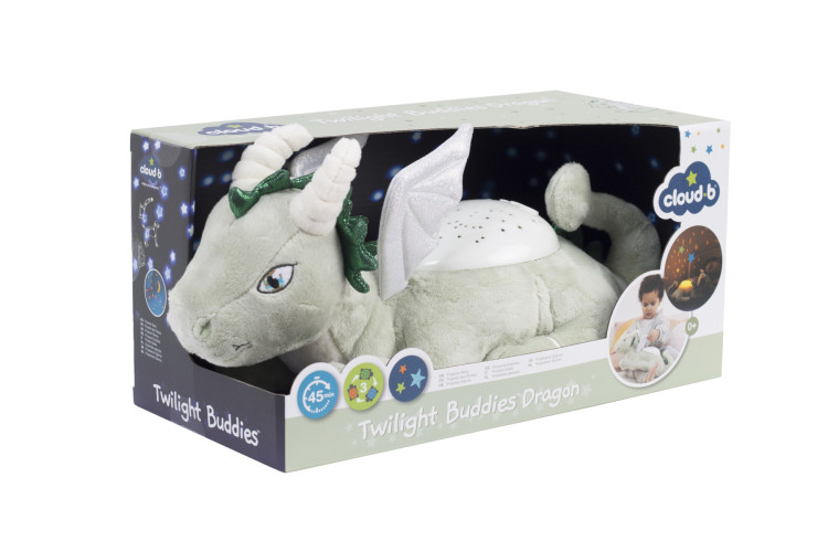 Нічник з проектором Cloud b Дракон Twilight Buddies - неймовірно милі друзі, які перетворюють моторошну темну кімнату на зоряне небо, наповнене справжніми сузір'ями на стелі та стінах . Заспокійлива зоряна проекція містить місяць та три сузір'я, заховані всередині! Веселий, плюшевий друг вдень та заспокійливе світло вночі, «Сутінкові Будди» стануть одними з найкращих друзів вашої дитини під час гри, перед сном, будь-коли та будь-де!