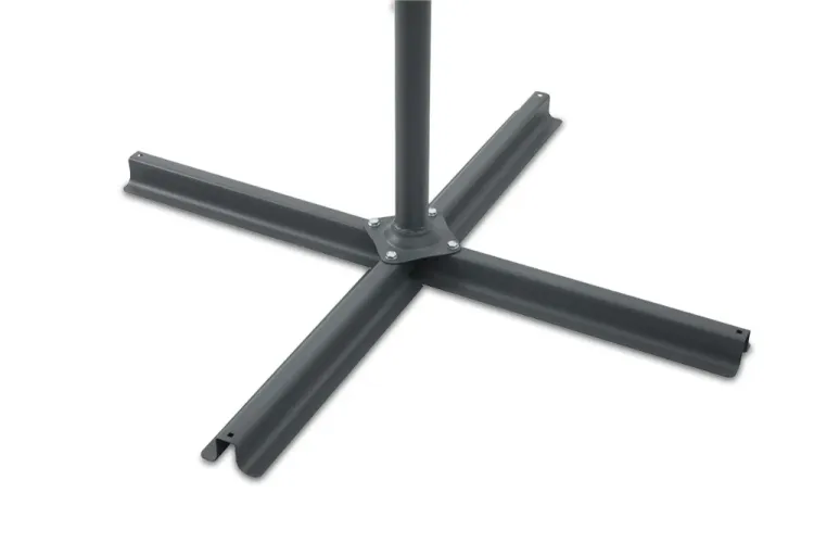 - Парасолька встановлена на сталевій хрестовій основі (не забудьте придбати гранітний вантаж)