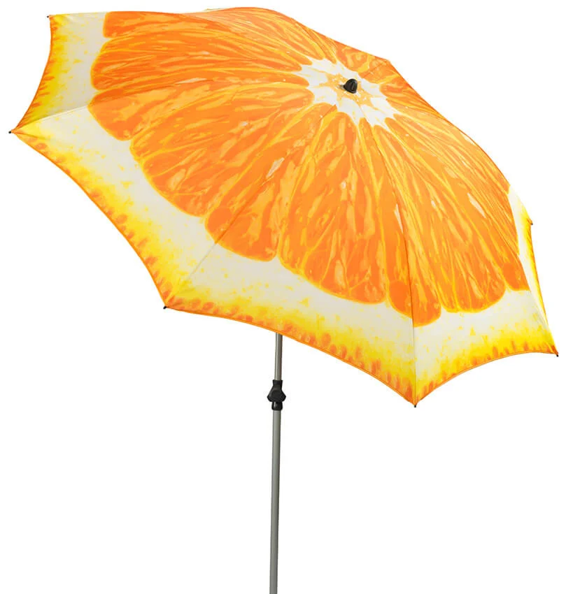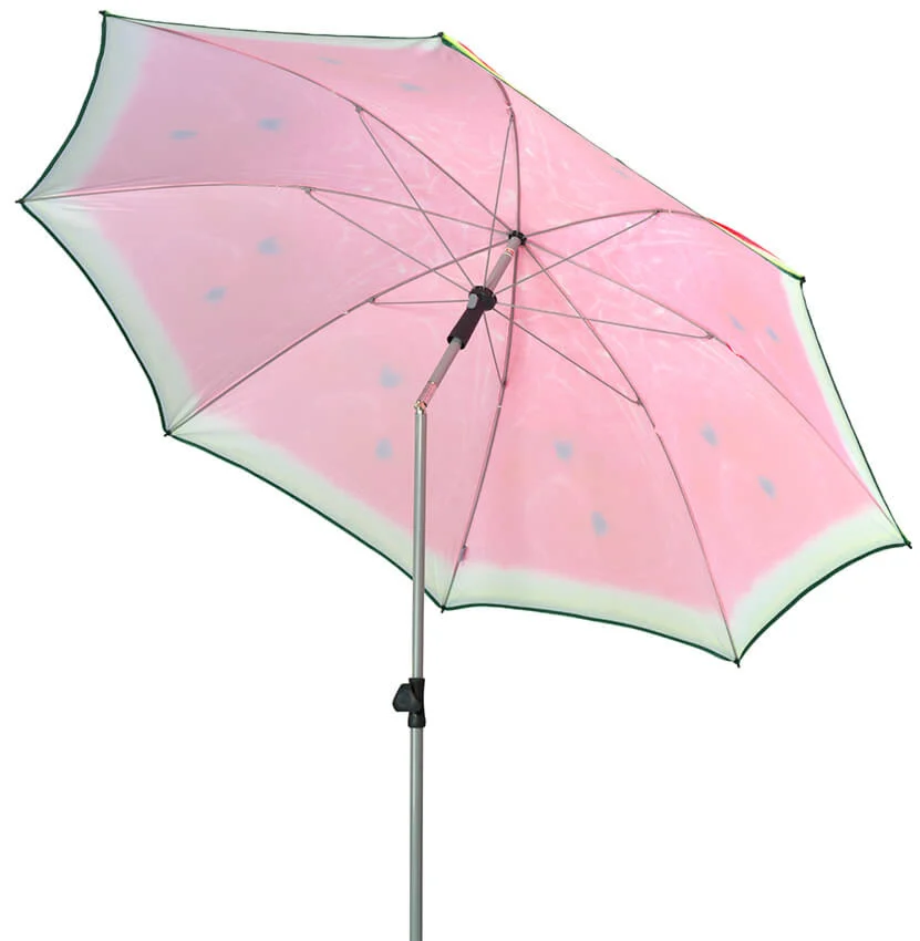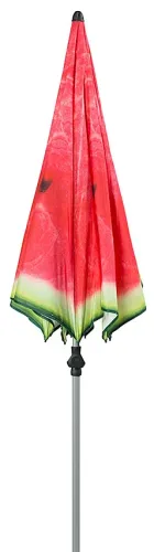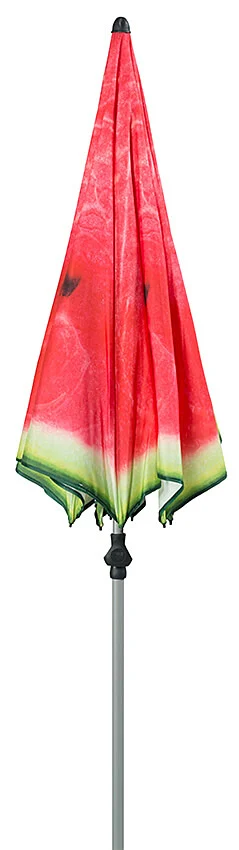 Садова парасоля Doppler FRUIT 2 м - відповідь на найбожевільніші смаки! Ця модна парасолька з незвичайним кавуновим візерунком вражає своїми соковитими кольорами. Вона ідеально впишеться в садову зелень, а також приверне увагу на пляжній мапі. Проте оригінальний зовнішній вигляд - це ще не все! Виріб виготовлено з високоякісних матеріалів: він складається з міцної сталевої конструкції (сріблястого кольору), що забезпечує йому необхідну стійкість, двосхилого стовпа товщиною 22/25 мм, верхня частина якого дозволяє нахиляти навіс під кутом падіння сонця. Це робить парасольку придатною для використання в будь-який час доби. Зонт діаметром 200 см вкритий чохлом з міцного поліестеру вагою 160 г/м2. Це забезпечує довговічність і стійкість до несприятливих погодних умов: парасолька стійка до дощу, сильного вітру і світла. Завдяки стійкості до ультрафіолету SPF 50+ парасолька ідеально підходить для використання на пляжі для захисту від шкідливих сонячних променів.