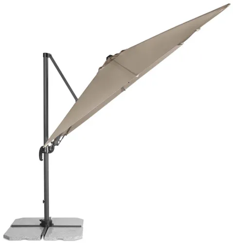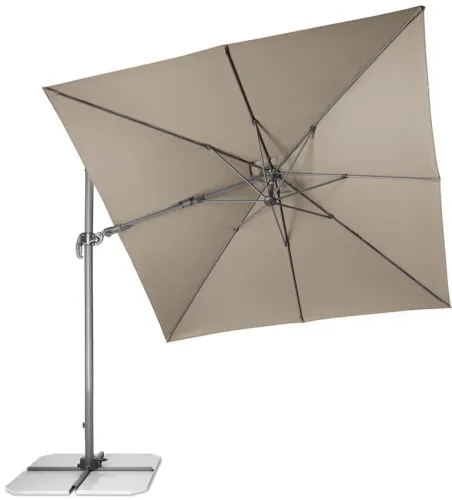 Садова парасоля Doppler RAVENNA AX 2,75x27,5 м - не знаєте, яку парасольку вибрати для балкона, тераси або саду? Шукаєте моделі з бічною стійкою? У цьому випадку RAVENNA AX 275x275 by Derby від відомої компанії Doppler - ідеальний продукт. Безпомилковий сучасний дизайн і квадратний купол парасольки розміром 275х275 см привертають до себе увагу. Залежно від ваших уподобань, ви можете придбати її в світло-сірому, бежево-сірому, кремовому або антрацитовому кольорі. Велика парасолька з бічною стійкою буде чудово виглядати в поєднанні з сучасними та елегантними садовими меблями. Якщо ви любите садові меблі, які не тільки чудово виглядають, але й мають відмінні експлуатаційні характеристики, парасолька REVENNA ax 275x275 ідеально підходить для вас. Виріб має зручну систему відкриття та регулювання положення за допомогою кривошипної ручки. Всього кілька рухів - і кут нахилу парасольки буде відповідати вашим уподобанням. Крім того, виріб виготовлено з міцного алюмінію та поліестеру вагою 180 г/м2. Використання таких матеріалів для виробництва гарантує стійкість до несприятливих погодних умов. Завдяки цьому він може прослужити вам довгі роки, зберігаючи свій естетичний вигляд і параметри.Квадратний купол парасольки RAVENNA AX 275x275 тримається на 8 алюмінієвих спицях і може обертатися навколо осі щогли. Крім того, вона забезпечує захист як від дощу, так і від сонячних променів. Її рейтинг SPF становить 50+. Тож, насолоджуючись смачною кавою на свіжому повітрі або читаючи книгу, ви можете не хвилюватися про сонячні опіки.