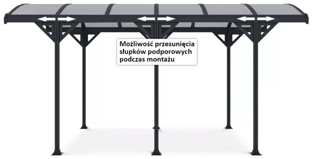 Пергола HARDMAISTER NEVADA 5,8x3m - ідеальне рішення для вас! Просто виберіть наш практичний навіс для автомобіля Nevada , і ваш автомобіль та інші транспортні засоби будуть захищені від примх погоди. Тепер ранкові подорожі стануть набагато легшими, навіть у дощові чи сніжні дні. Наші укриття Nevada - це не тільки ефективний захист, а й простота та функціональність. Виготовлений із міцного алюмінію та міцного полікарбонату, він гарантує міцність та надійність. Це рішення, яке не тільки виконує свою функцію, але і виглядає стильно. Варто звернути увагу на регульовані опорні стійки, які можна вільно переміщати уздовж укриття . Завдяки цьому ви можете регулювати їх розташування, уникаючи ударів об двері автомобіля при посадці і висадці. Це деталь, яку оцінять усі водії. Характерний, злегка вигнутий арочний дах не тільки додає елегантності, але й має практичне застосування. Допомагає ефективно відводити воду та запобігає накопиченню снігу. Потім волога безпечно направляється в землю через функціональну систему водостоків. Встановлювати укриття Nevada - суцільне задоволення. У комплекті ви знайдете всі необхідні елементи та детальну інструкцію, що дозволить вам самостійно встановити його. Наше укриття можна успішно використовувати як окремо стоїть дах або прикріпити до стіни будівлі. Це універсальне рішення, яке ідеально підходить як для дому, так і для бізнесу, забезпечуючи безцінний захист від погодних умов. Варто також підкреслити, що притулок Невада не потребує особливого догляду. Він простий в обслуговуванні і прослужить вам довгий час. Тому, незалежно від того, чи потрібен вам захист для вашого автомобіля чи інших транспортних засобів, наш автомобільний навіс Nevada стане ідеальним вибором. Нехай твоє життя стане простішим і комфортнішим завдяки цьому!