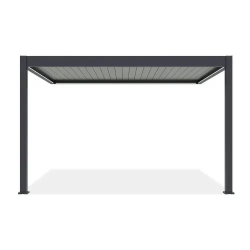 Пергола терасна пристінна Gutroof ELEGANCE WALL AUTOMATIC 3x4 з підсвічуванням - є функціональним і елегантним елементом обладнання тераси або саду. Дуже естетичний дизайн і модні кольори ідеально вписуються в сучасний відкритий простір. Інноваційні зручності, такі як автоматично регульований дах або передова система водовідведення, значно підвищують комфорт перебування на природі незалежно від погодних умов. Алюмінієві планки даху повертаються на 135 градусів за допомогою пульта дистанційного керування та програми, яка дозволяє дистанційно керувати дахом із переглядом у реальному часі в радіусі 30 метрів. Пульт дистанційного керування також використовується для вмикання та вимикання світлодіодного освітлення. Колір і яскравість світлодіодів можна змінювати за допомогою програми після сканування QR-коду на світлодіодній стрічці при складанні перголи. Виріб виготовлено повністю з алюмінію. Порошкове покриття Akzo Nobel захищає від механічних пошкоджень. Пергола характеризується вітростійкістю до 100 км/год і максимальним навантаженням на дах до 50 кг/м². Якщо ви шукаєте комплексний захист під вашою перголою, у нас є рішення для вас! Рулонні штори з екранної тканини (продаються окремо) - це довговічне та стійке до погодних умов рішення, яке забезпечує ефективний захист від сонця, дощу та комах. Якщо ви віддаєте перевагу щось більш стандартне, ви можете підібрати сумісні аксесуари у вигляді панелей жалюзі з вертикальними або горизонтальними ламелями або красивою декоративною ширмою. Збірка перголи швидка і проста завдяки зрозумілим покроковим інструкціям і повному монтажному комплекту. Залучіть лише 1-2 людей, і ви миттєво створите власний оазис відпочинку та комфорту. Довіртеся якості бренду Gutroof, який пройшов ретельні випробування і має необхідні сертифікати, що підтверджують його надійність і безпеку використання. Це також дозволяє використовувати перголу в комерційних цілях у внутрішніх двориках готелів або садах ресторанів.