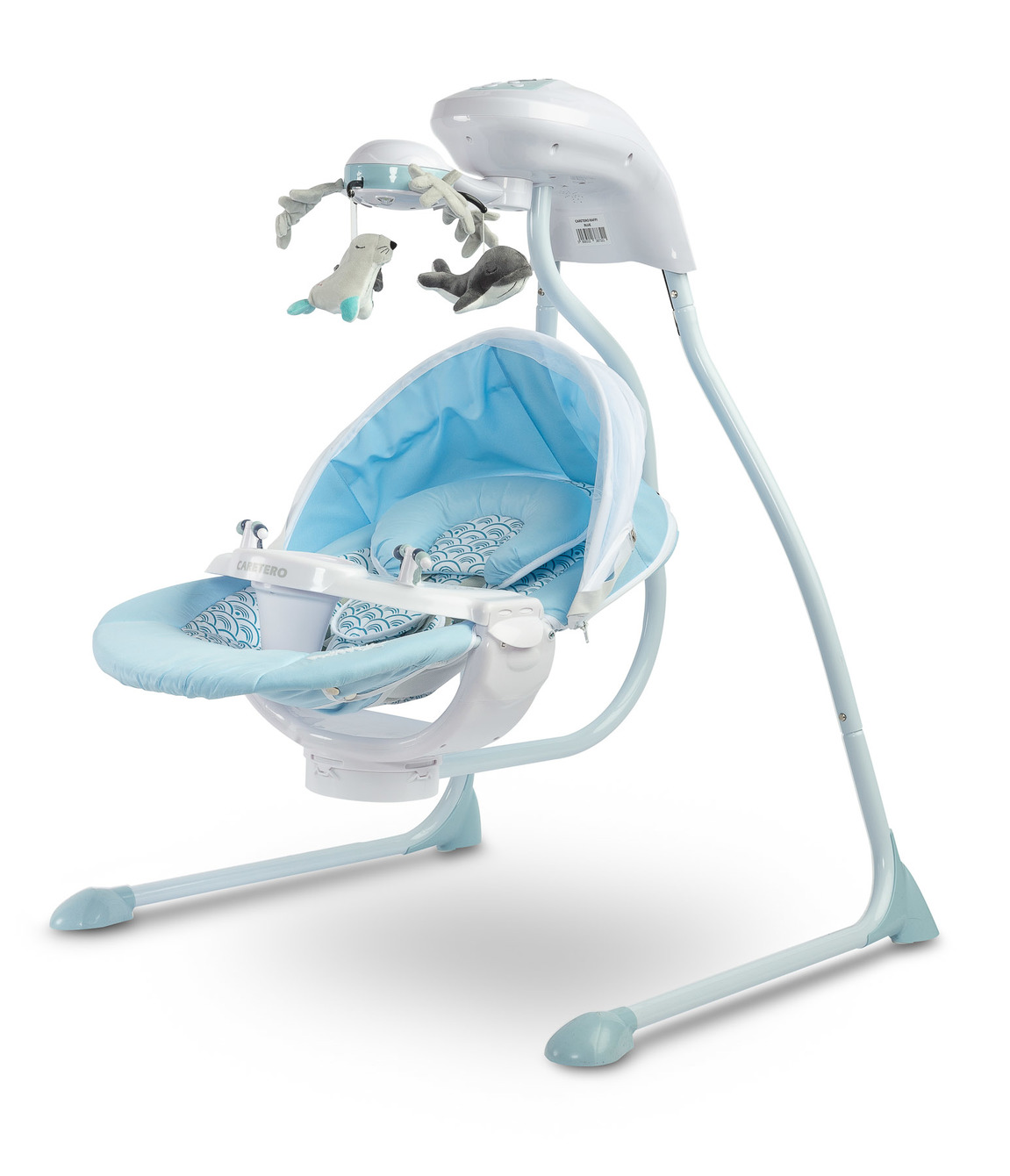 Caretero RAFFI - це високоякісна електрична гойдалка, призначена для немовлят. Зручне сидіння з подушкою дозволяє використовувати її з перших днів життя немовляти. Двоступеневе регулювання спинки дозволяє розмістити дитину в лежачому або напівлежачому положенні. Повертаючи сидіння на 90 градусів (вліво або вправо), можна змінювати напрямок гойдання (праворуч-ліворуч або вперед-назад). Гойдалка має електричну карусель з підсвічуванням і знімний піддон для легкого догляду за дитиною. Raffi також поставляється зі знімною москітною сіткою з капюшоном і може працювати від батарейок для легкого використання на вулиці.