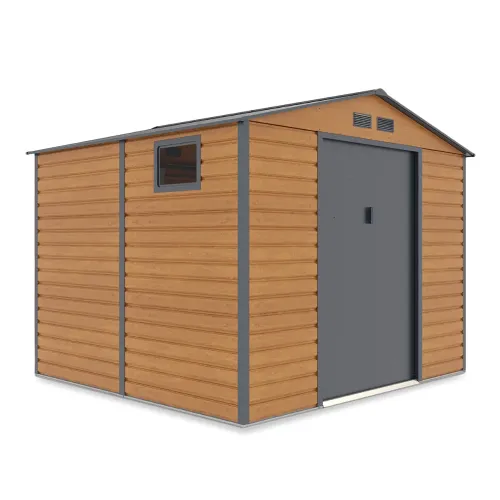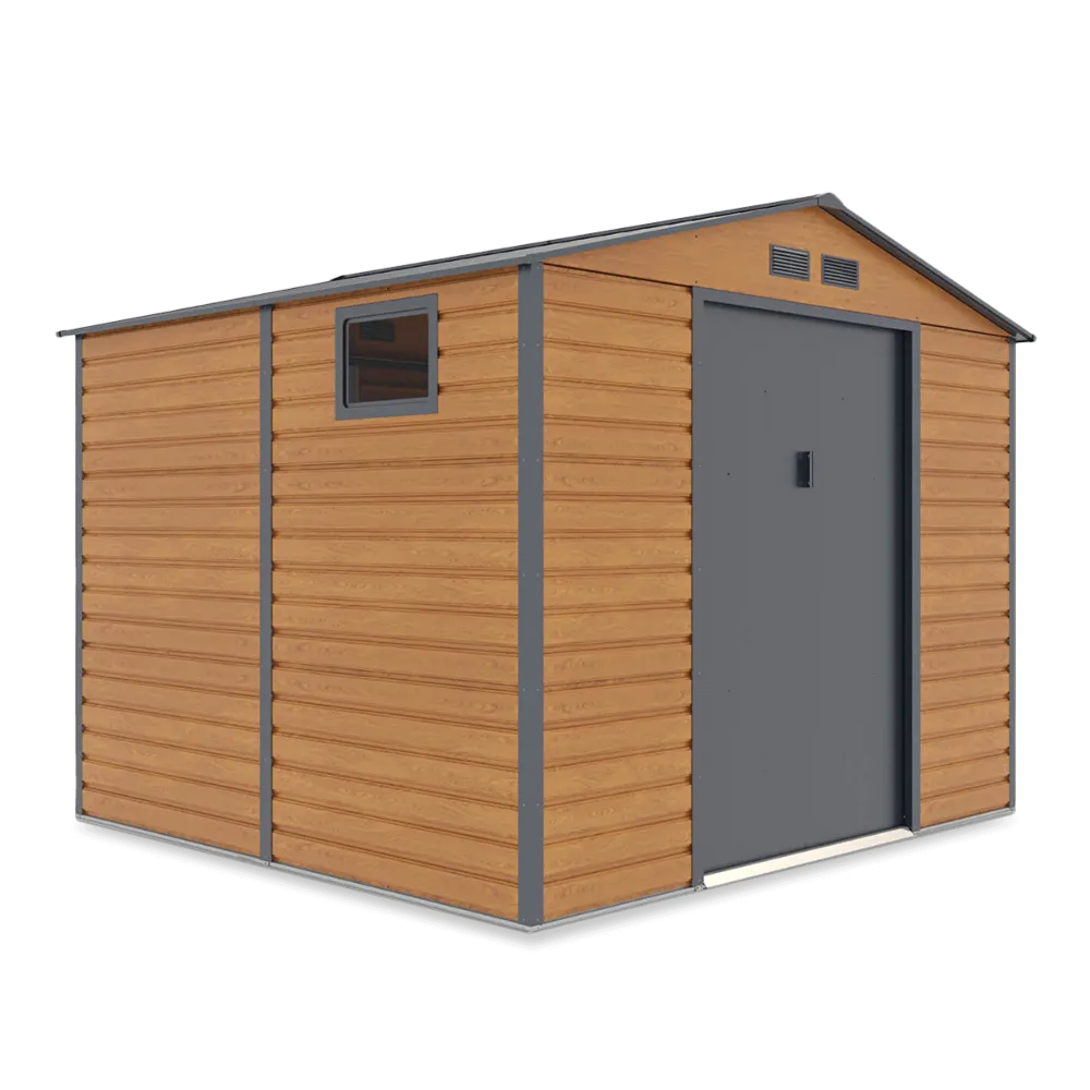 Садовий будинок Hardmaister для інструментів MONTREAL 277x259 см - пропонує ідеальне місце для зберігання садового інструменту. Його міцна конструкція з оцинкованої сталі та сталеві панелі товщиною 0,25 мм забезпечують стійкість до іржі та дощу. Похилий дах дозволяє воді швидко стікати, а вентиляція запобігає накопиченню вологи всередині.