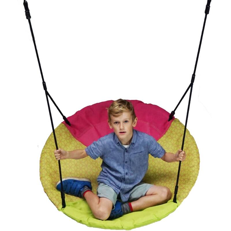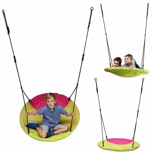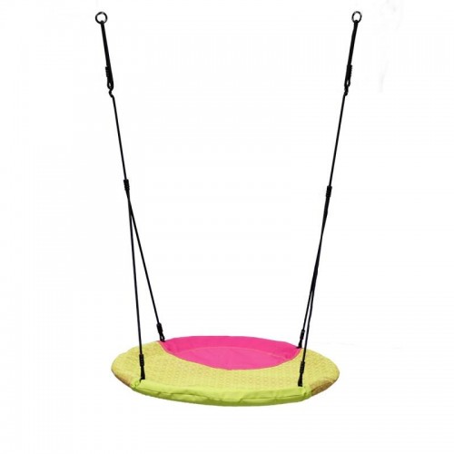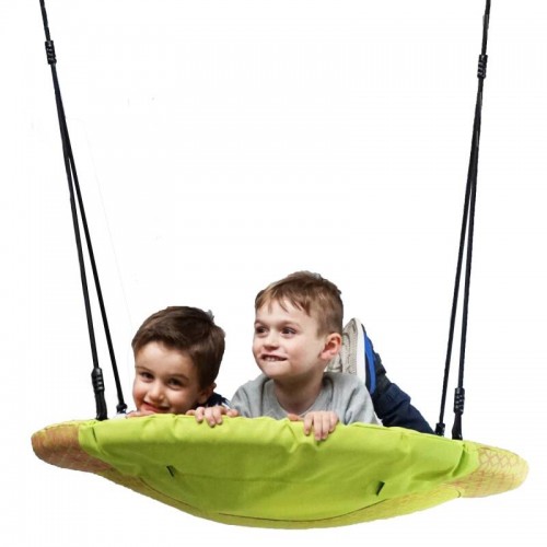 Підвісна гойдалка Woopie Lime - легко збирається. Чорні плетені мотузки надають гойдалці приємного вигляду, а довжина легко регулюється. Металевий каркас має м'яку підкладку, яка пом'якшує удари. Міцна, але приємна на дотик тканина, через яку легко стікає вода. Коліщатка та вісімки виготовлені з оцинкованої сталі.