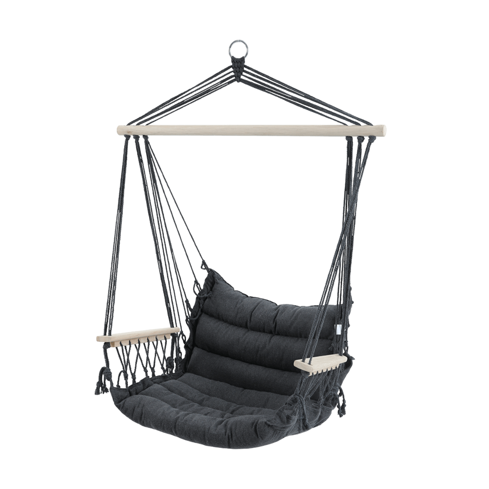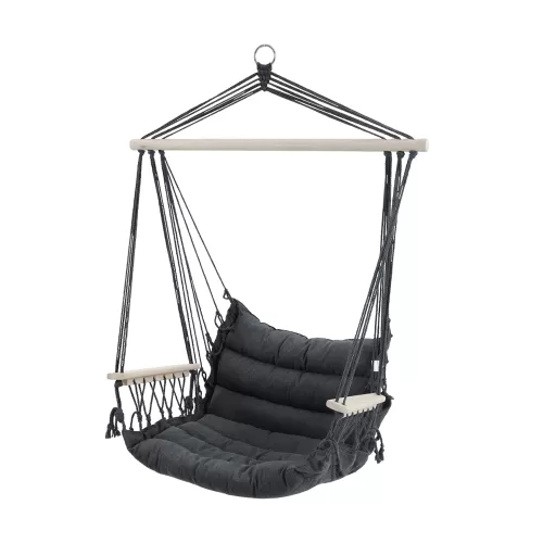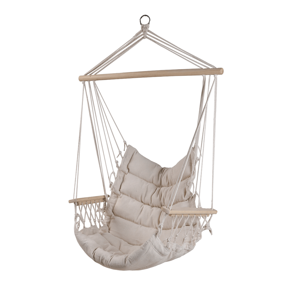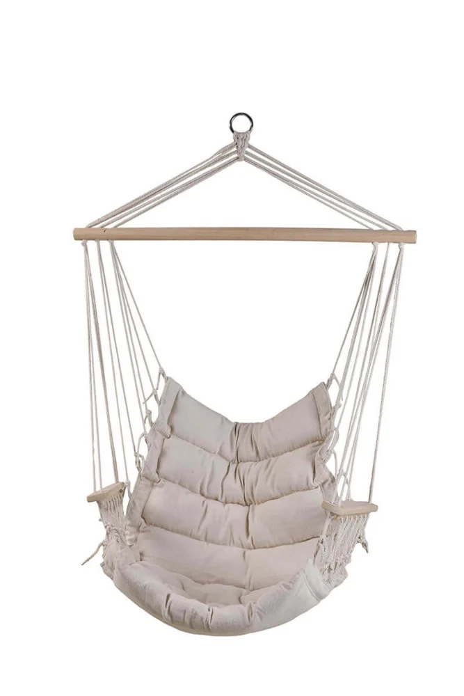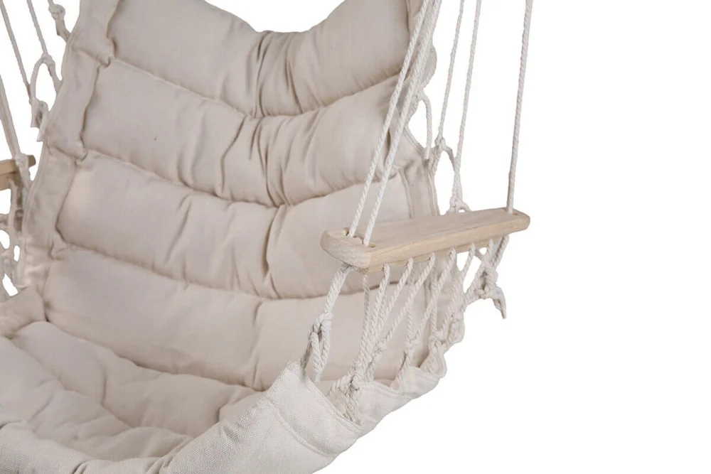 Підвісна гойдалка BARBADOS - підвісне садове крісло BARBADOS . Це унікальний предмет меблів, який дозволить вам зануритися в блаженний відпочинок, насолоджуючись розкішшю і комфортом в оточенні природи. Ми пропонуємо неперевершене крісло-гамак з підлокітником, яке подарує вам незабутні враження і відмінну підтримку для рук, поки ви будете блаженно відпочивати на свіжому повітрі. Виготовлене з міцного дерев'яного прута довжиною 90 см у натуральному кольорі, крісло не тільки стильно виглядає, але й гарантує довговічність протягом багатьох сезонів. Розмір виробу забезпечує достатній простір для відпочинку, а використаний матеріал - 300-грамова полі-бавовна з наповнювачем - гарантує неперевершений комфорт під час довгих годин відпочинку. Крім того, дерев'яний підлокітник додає елегантності та вишуканого стилю всій конструкції. Вам не доведеться турбуватися про вантажопідйомність, адже наше крісло BARBADOS Nature витримує до 100 кг, що робить його ідеальним вибором для тих, хто цінує комфорт і розкішний відпочинок на свіжому повітрі. Підвісне крісло BARBADOS Nature є обов'язковим атрибутом будь-якого саду, дозволяючи відпочити в розкоші і спокої, створюючи неповторну атмосферу релаксації.