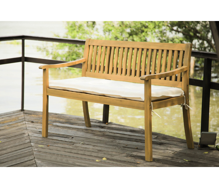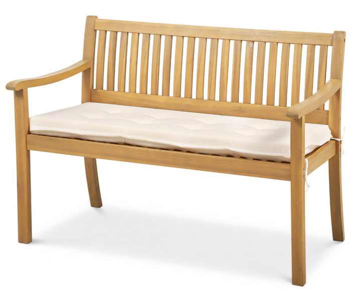 Дерев'яна лава ALNES з подушкою - ознайомтеся з лавкою Alnes з деревини акації, доповненою подушкою для сидіння. Це надзвичайно стильна модель. Її форма мінімалістична, але текстура натурального матеріалу надає елегантності. Ретельно виготовлена дерев'яна садова лавка Alnes з подушкою пасуватиме як до сучасної, так і до традиційної архітектури. Це допоможе вам виділити невеликий куточок для відпочинку або додаткове місце для відпочинку. Забезпечує місце для двох осіб. Вона захищений від погодних умов, тому ідеально підходить для використання на вулиці.Пам'ятайте! Щоб дерев’яні меблі можна було безпечно використовувати на вулиці, їх необхідно правильно підготувати. Таким засобом є імпрегнація. Вона передбачає нанесення на меблі спеціального засобу, який захищає меблі від контакту з вологою, а отже, від руйнування чи деформації. Ще один спосіб захистити дерев’яне обладнання від погодних умов – змастити його маслом. Залежно від того, скільки деревини використовується, її рекомендується змащувати не рідше одного разу на рік. Додатково також варто захистити меблі чохлом. Хочемо звернути вашу увагу на неповторну красу і природність дерев'яних меблів. Варто пам'ятати, що дерево - живий матеріал, який дихає. Завдяки цьому він привносить свою автентичну атмосферу в оточення. Однак з часом він може зазнати незначних змін, таких як легкі тріщини або зміна відтінку через сонячне світло. Це природний процес, який підкреслює його унікальність.