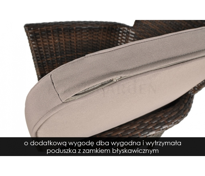 Садове крісло LERIDA + подушка - це стильне і дуже зручне крісло, виготовлене з високоякісного алюмінію і техноротанга, найміцніших матеріалів, стійких до погодних умов і УФ-випромінювання. Серед інших переваг – цікавий дизайн і винятково приємний дизайн. Якщо ви шукаєте ідеальний стілець для гастрономії, ресторану чи кафе, наша пропозиція стане ідеальним рішенням. Він також чудово працюватиме в саду чи на терасі.