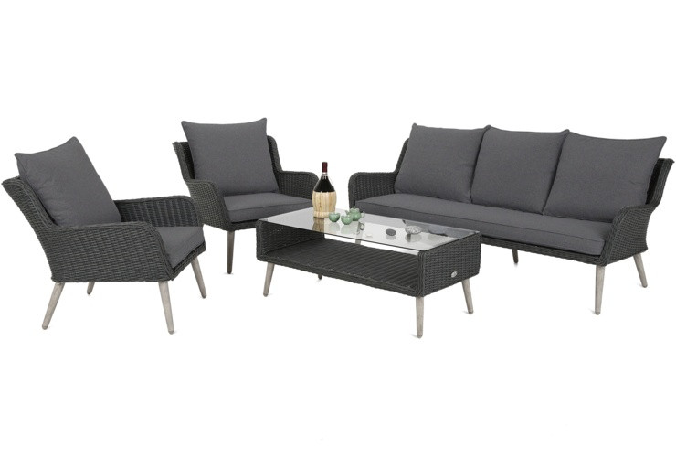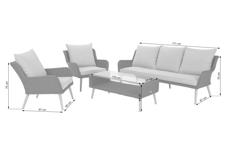 Набір садових меблів Almeria складається з двох крісел і зручного дивана, що дозволяє комфортно відпочити 5 особам. Кожне сидіння та спинка оснащені м’якими подушками, що робить зустрічі в саду улюбленим заняттям для родини та друзів. Кожна подушка має чохол на блискавці - якщо щось забрудниться, його можна легко зняти і випрати. Столик, що входить до комплекту, чудово підійде як підставка для ваших улюблених напоїв чи закусок. Верхня частина виготовлена із загартованого скла, тому вона стійка до будь-яких подряпин!Весь набір виготовлений з техноратанга - синтетичного ротанга, який простий у догляді, чиститься та стійкий до несприятливих погодних умов. Крім того, він легкий і гнучкий - його важко пошкодити і легко пересунути, що важливо для садових робіт. Техноратанг ідеально поєднується з сірими чохлами та мінімалістичним стилем комплекту Almeria. Вся конструкція посилена алюмінієвою рамою, а ніжки з того ж матеріалу регулюються - ви більше не будете боятися нестабільного ґрунту, просто відрегулюйте довжину ніжок.
