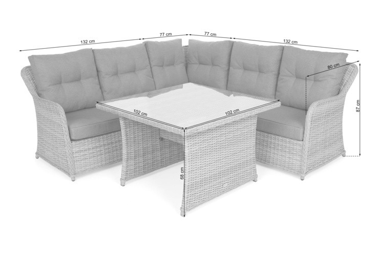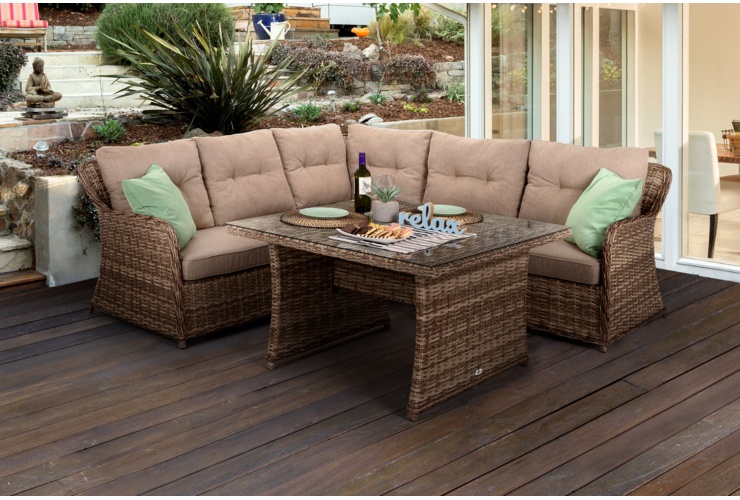 Сірий техноротанговий куточок Bergamo ідеально заповнить простір на вашій терасі або під альтанкою в саду. На ньому з успіхом розмістяться до 5 осіб. Ця модель розроблена з увагою до деталей, що робить її не тільки візуально красивою, але й функціональною. У комплекті ви знайдете кілька сегментів, які перетворюються в один практичний диван. У комплекті ви також знайдете столик зі склом, який можна використовувати як місце для зберігання склянок, чашок або тарілок з їжею для ваших гостей.Якщо ви хочете створити зону відпочинку перед будинком, садовий куточок Бергамо сірого кольору ідеально підійде для цього. Ви можете почитати книгу на свіжому повітрі або навіть трохи подрімати. Меблі надають у ваше розпорядження багато простору. П'ять осіб можуть розміститися тут з комфортом і свободою пересування. Крім того, в комплекті є практичний столик, який ідеально підходить для барбекю, післяобідньої кави або зустрічей на свіжому повітрі з близькими людьми. Його легко мити завдяки покриттю із загартованого скла. Ви також швидко позбудетеся плям або надлишку вологи після дощу. Як бачите, садовий куточок техноротанг - відмінний вибір для організації зони відпочинку на терасі і в саду.Кутові меблі Бергамо техноротанг складаються з каркасу, який виготовлений з алюмінію з порошковим покриттям. Це рішення робить поверхню надзвичайно стійкою до мінливих погодних умов. Навіть після багатьох сезонів ви не помітите зміни кольору або слідів іржі. Сірий техноротанговий куточок Бергамо - це також високоякісний чохол і подушки. Поєднання матеріалів забезпечує не тільки відмінні естетичні якості, але й велику довговічність. Це вибір меблів на багато довгих сезонів.