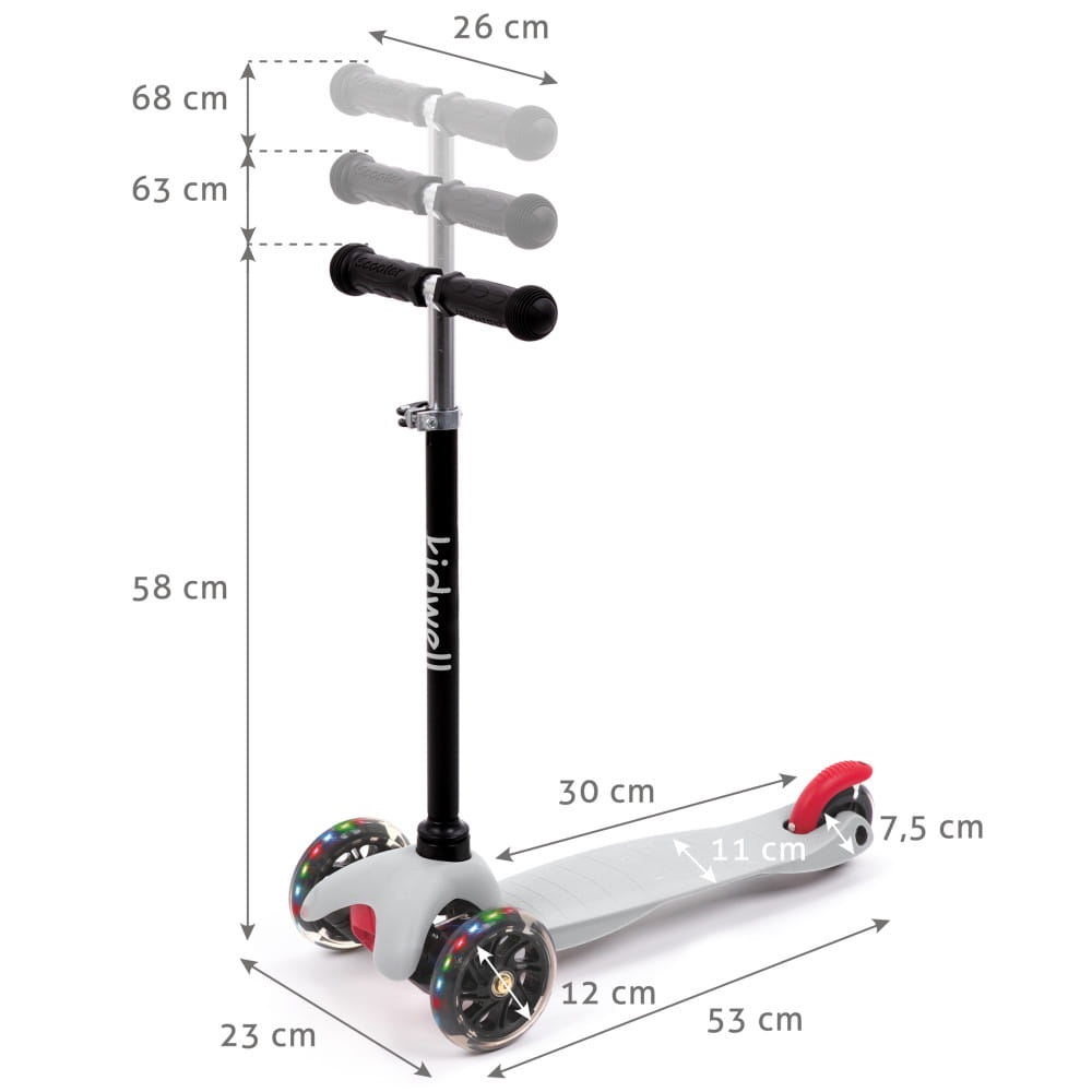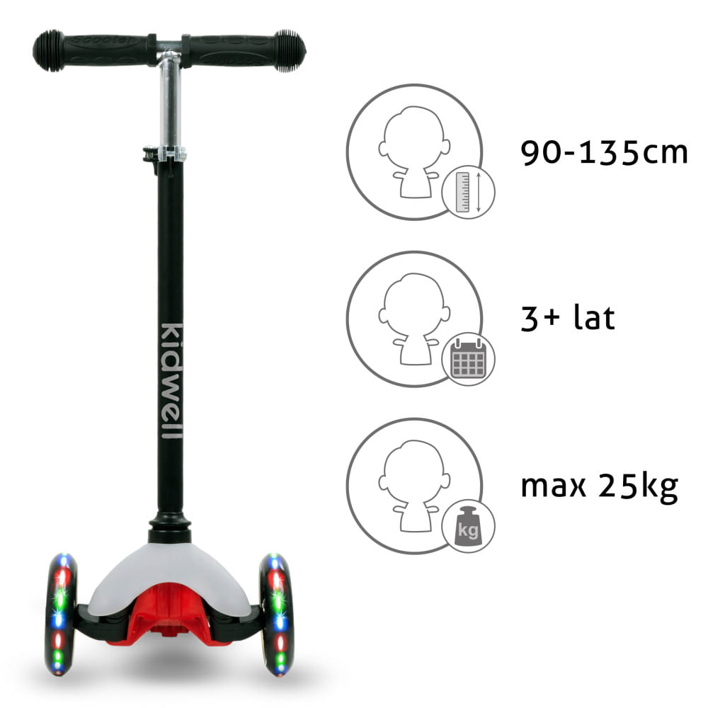 Самокат Kidwell UNO - тренує моторику, координацію рухів, а головне подарує задоволення вашій дитині. Їзда на самокаті Uno - це чудова розвага та чудовий спосіб провести вільний час на природі. Це точно подарує кожній дитині масу радості. Модель Uno - триколісний самокат-балансир, найкращий для початківців, легкий в управлінні, стійкий і легкий. Його ефектно сяючі колеса спонукатимуть вас до активності.