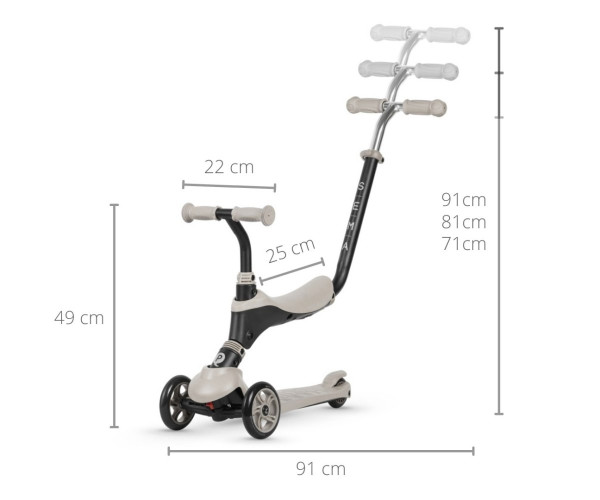 - Висота ручки штовхача/самоката: 71-81-91 см