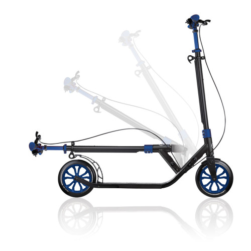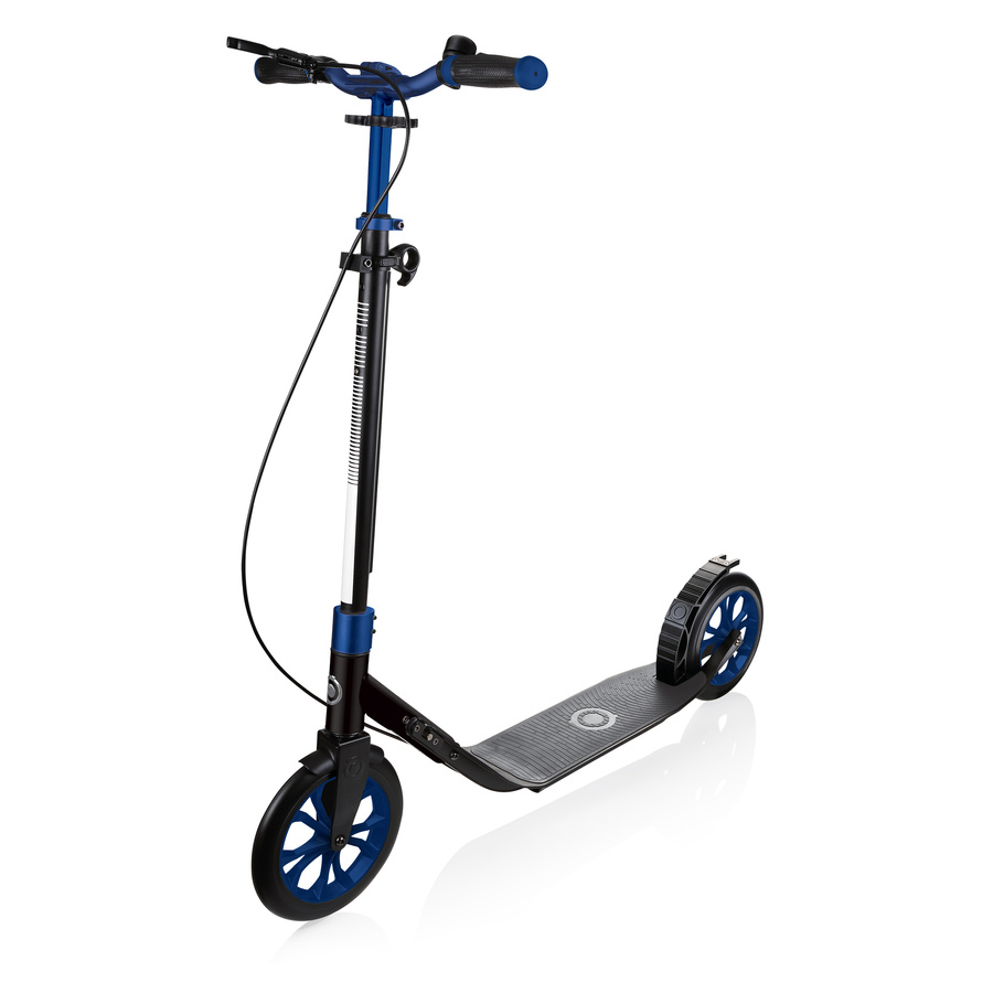Cамокат Globber ONE NL 230 - зручний, швидкий міський самокат для вимогливих користувачів. Має систему швидкого складання.Надміцна, посилена конструкція. Зручне алюмінієве кермо з м'якими TPR-ручками, що мають контурну форму.Дека з м'якою піною EVA.Довге металеве заднє гальмо.Оснащений гальмівним важелем і дзвінком, встановленим на кермі.Світловідбиваюча графіка, надрукована на передній частині самоката для підвищення безпеки в темний час доби.