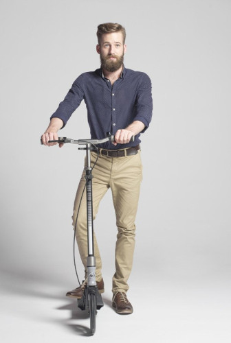 - Режим паркування - напівскладене положення - дозволяє стабільно паркувати самокат у вертикальному положенні, не притуляючись до стіни