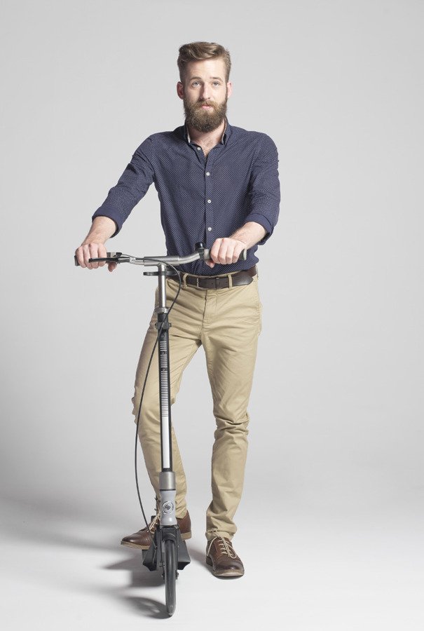 - Режим візка - в складеному стані самокат набуває компактної форми, зручної для транспортування. Займає мало місця при зберіганні.