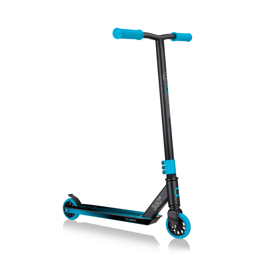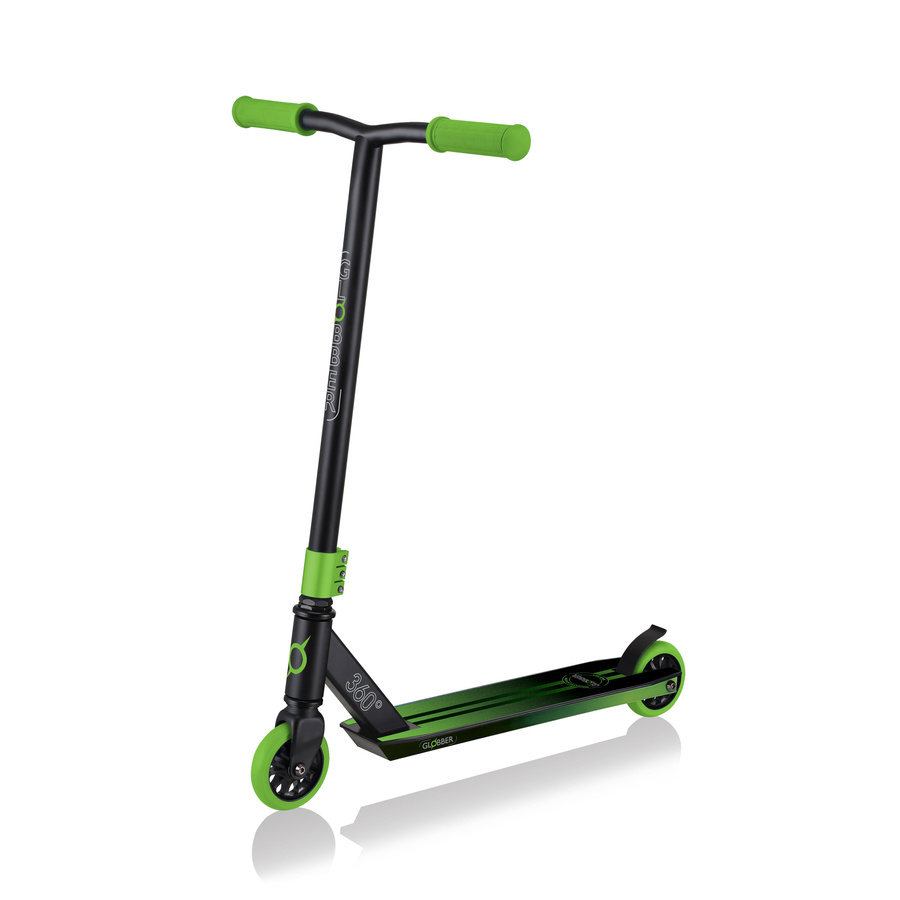Самокат Globber GS 360 - розкрийте свій потенціал у фрістайлі та почніть виконувати трюки з GS 360 - ідеальним самокатом для початківців віком від 6 років, які готові відкрити для себе цей дивовижний вид спорту, що перебуває на підйомі.Завдяки високоякісним і довговічним компонентам, таким як алюмінієва дека, литі поліуретанові колеса з анодованим алюмінієвим сердечником і сталеві задні гальма FLEX, самокат GS 360 дозволяє юним скейтерам безпечно вивчати трюки, сальто і трюки у фрістайлі!Надійний самокат: алюмінієва дека та сталеве кермо.Самокат для початківців GS 360 має алюмінієву деку з покриттям T5, яка витримує до 100 кг, і вигнуте Т-подібне кермо. Міцність матеріалу забезпечує безпечний, довговічний самокат для початківців, які хочуть навчитися найпопулярнішим трюкам на спортивному самокаті. Т-подібне кермо GS 360 також має 125-міліметрові TPR-ручки для додаткового комфорту.Наш дитячий самокат оснащений високоякісними 100-міліметровими кольоровими литими поліуретановими колесами з анодованим алюмінієвим сердечником, що означає, що самокат GS 360 для початківців витримує силу удару, спричинену стрибками та іншими трюками під час приземлення на самокатах для трюків.Безпека є обов'язковою умовою при навчанні їзді по рампах! GS 360 має сталеве заднє гальмо FLEX, підігнане під колесо, для безпечної їзди та ефективного гальмування під час фрістайлу на самокаті.