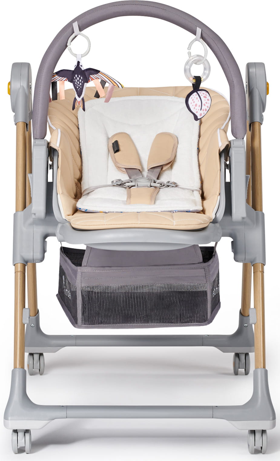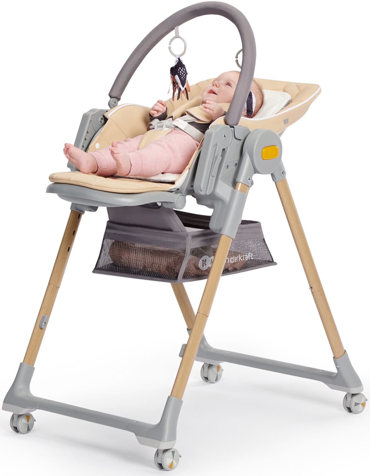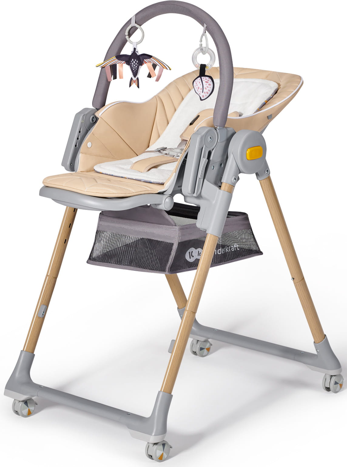 Стільчик для годування Kinderkraft LASTREE - це не звичайний стільчик для годування. Він з перших днів життя дитини грає роль високого шезлонгу, щоб малюк міг брати участь у житті сім'ї. Коли дитина підросте, Lastree перетворюється на стільчик для годування. Завдяки широкому діапазону регулювання вона буде дитині до 3 років (максимальне навантаження до 15 кг). Зручні коліщатка дозволяють легко переміщати стільчик, а сучасний візерунок під мармурову мозаїку у поєднанні з класичним дизайном означає, що Lastree підійде до багатьох інтер'єрів. Стільчик Lastree 2в1 виконує функції шезлонгу (для дітей до 9 кг). Широке, м'яке сидіння дозволить малюкові скласти компанію батькам у повсякденних справах. Шезлонг можна встановити в низькому або високому положенні. У свою чергу, спинка, що регулюється до положення лежачи, надасть дитині можливість комфортного відпочинку в будь-який час. Також він виконує функцію розкладного стільця для годування (для дітей до 15 кг). Висоту сидіння можна встановити на 5 рівнях, а додаткова підставка для ніг забезпечить відповідну підтримку маленьким ніжкам. У комплект входить дуга з двома іграшками, які зацікавлять дитину і мотивуватимуть її витягувати ручки вгору. Іграшки різної фактури стимулюють розвиток дотику, при цьому даючи дитині багато задоволення.