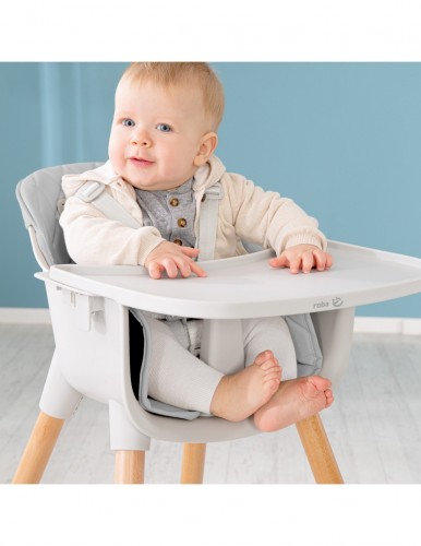 Стільчик для годування Roba Style Up World - з сучасним дизайном «StyleUp» має сіру оббивку сидіння зі штучної шкіри та оснащений обіднім столиком. Стільчик може використовуватися протягом декількох років завдяки регульованим ніжкам. Обідній столик, що входить в комплект, знімний і легко чиститься. 5-точкова система ременів гарантують додаткову безпеку під час прийому їжі . Підніжка крісла регулюється по висоті в 2 положеннях. Завдяки своєму гарному дизайну дитячий стільчик справді привертає увагу та гармонує з виробами серії roba Style.