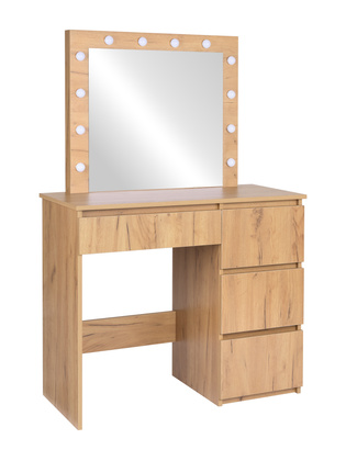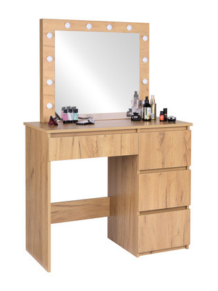 Туалетний столик FunFit з дзеркалом 4544 - зі світлодіодним підсвічуванням та дзеркалом – стильний та функціональний предмет меблів, ідеальний для спальні або гардеробної. Він оснащений великим дзеркалом з лампочками, розташованими навколо рами, що створює ідеальне середовище для макіяжу та догляду за шкірою. Чотири просторі шухляди вміщують всю вашу косметику, аксесуари та ювелірні вироби, зберігаючи ваші щоденні необхідні речі організованими.