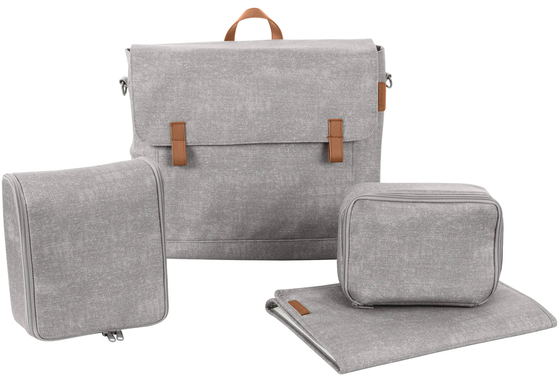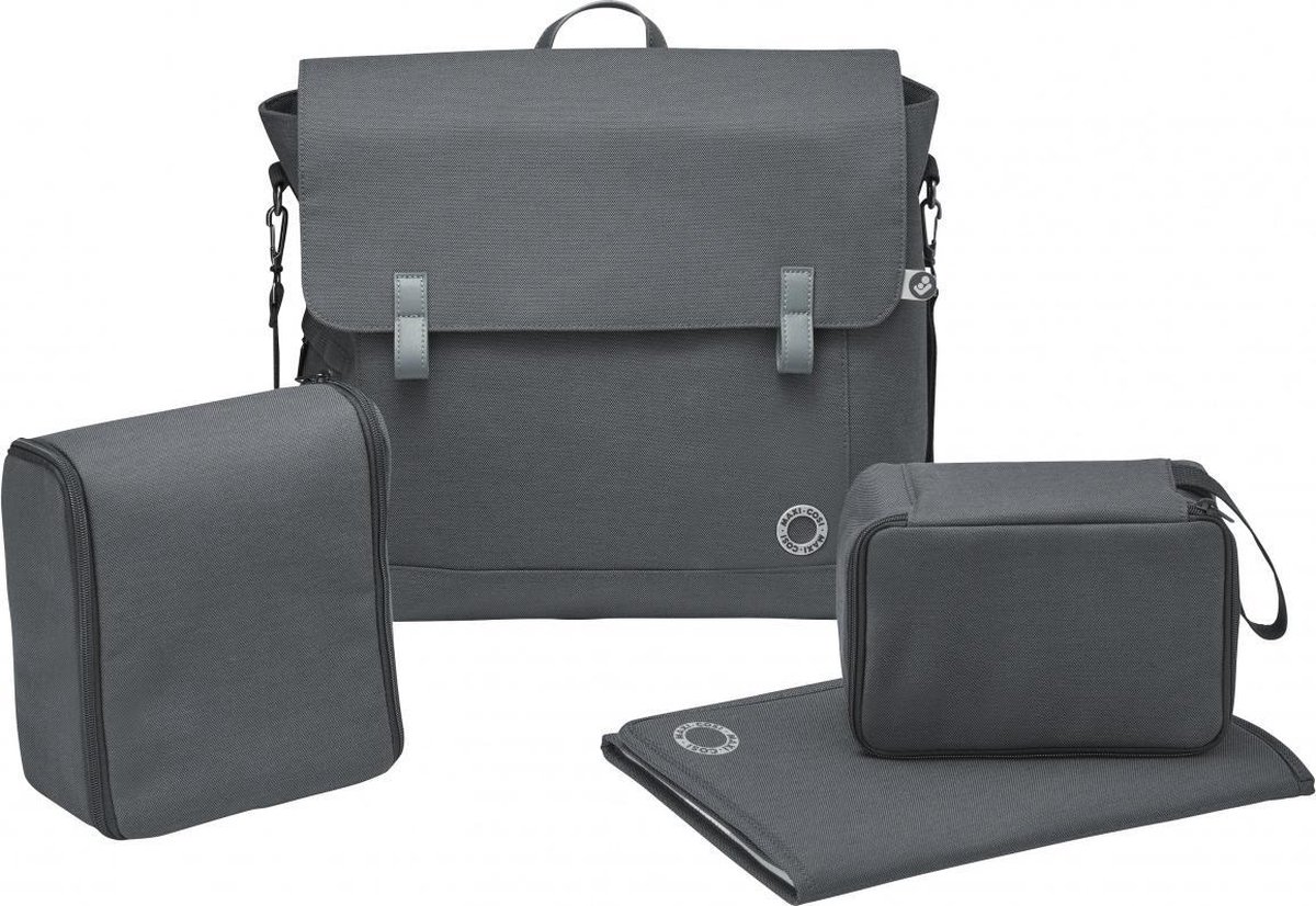 MaxiCosi сумка Modernbag - Сучасний і стильний сучасний мішок пелюшки мішок Maxi-COSI є ідеальним рішенням для пригод сімей. Водонепроникний пеленальний килимок і термосумка для теплої або холодної їжі. У комплект додатково входить пеленальний матрацик, сумочка для дитячого харчування (ланч-бокс), а також унікальна туалетна косметичка з підвісним гачком для швидкого доступу до вмісту при зміні памперса дитині. Широкий ремінь сумки надійно утримує її на ручці коляски чи плечі мами. Стильний зовнішній вигляд сумці Maxi-Cosi Modern Bag надають елементи з екошкіри та якісна металева фурнітура.