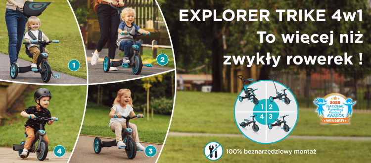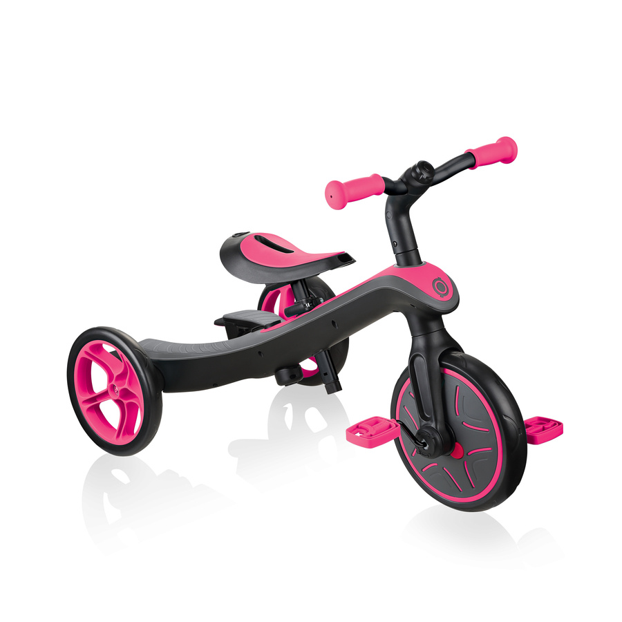 EXPLORER TRIKE - це 100% безінструментальний транспортний засіб для складання. Зручна трансформація виробу в різні стадії здійснюється за допомогою кнопок і регуляторів, що робить його дуже практичним триколісним велосипедом/біговелом як для дітей, так і для батьків!