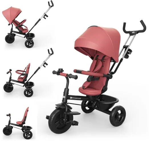 Триколісний велосипед Kinderkraft ASTON 2 PLUS - цеоновлена версія популярного трансформера "6 в 1", призначена для дітей від 9 місяців до 5 років. Модель відрізняється покращеним механізмом повороту сидіння та можливістю регулювання нахилу спинки для комфортного сну під час прогулянки.