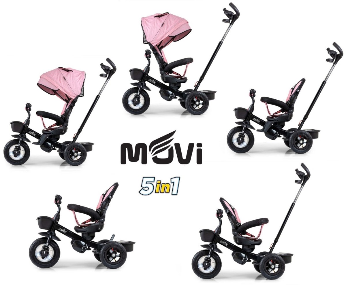 Триколісний велосипед Milly Mally Movi - був створений з урахуванням комфорту та безпеки дітей та зручності батьків. MOVI стабільний та безпечний, має сучасний дизайн та зручне, контурне сидіння, яке обертається на 360 градусів, що дозволяє подорожувати як по ходу руху, так і проти руху.