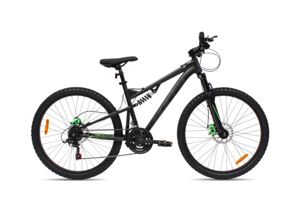 Дитячий велосипед Huffy MARKER 26 - це надійний гірський велосипед для дорослих та молоді (зростом від 153 см), розроблений для бездоріжжя. Сталева рама (43 см), 26-дюймові колеса та повна підвіска – 170-міліметрова передня вилка та 160-міліметрова задня пружина – забезпечують комфорт та контроль на складній місцевості. Велосипед має 21 швидкість Shimano TZ500 з манеткою TS39 та подвійні дискові гальма (160 мм спереду, 140 мм ззаду), що гарантують безпечне гальмування. Зручне сідло зі швидким зняттям та класичний чорний колір роблять його ідеальним вибором для щоденної їзди та поїздок на вихідні.