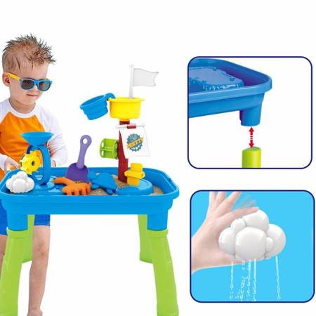 Водний столик-пісочниця Woopie Піратський корабель - ідеальна іграшка для ігор з водою та піском. До набору входить багато додаткових аксесуарів для гри, зокрема формочки, грабельки, лопатка та багато іншого. Використовуючи чашку, дитина може лити воду по щоглі і спостерігати, як вода рухається по водяних млинах. Стіл призначений для гри як в приміщенні, так і на вулиці. Ідеально підходить для гри в приміщенні і на пляжі або в пісочниці.